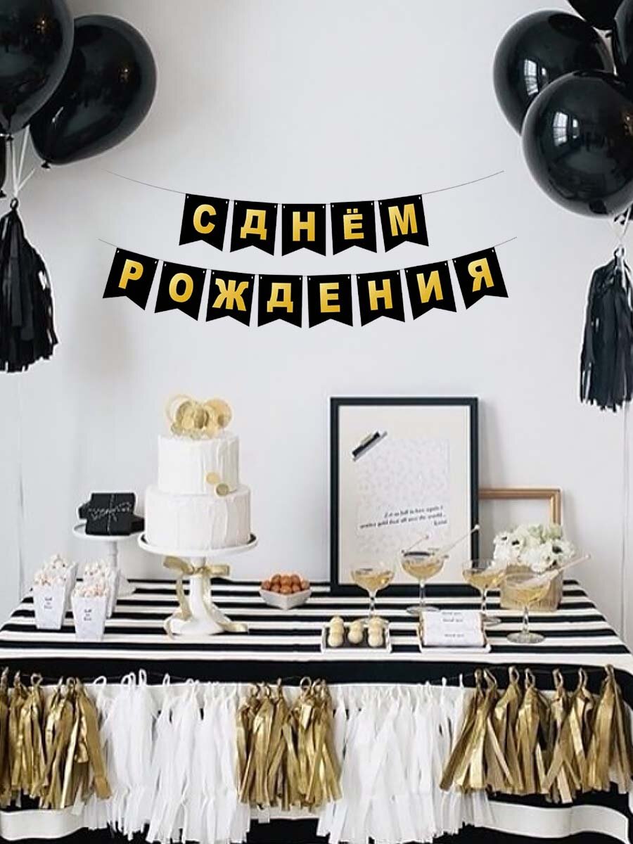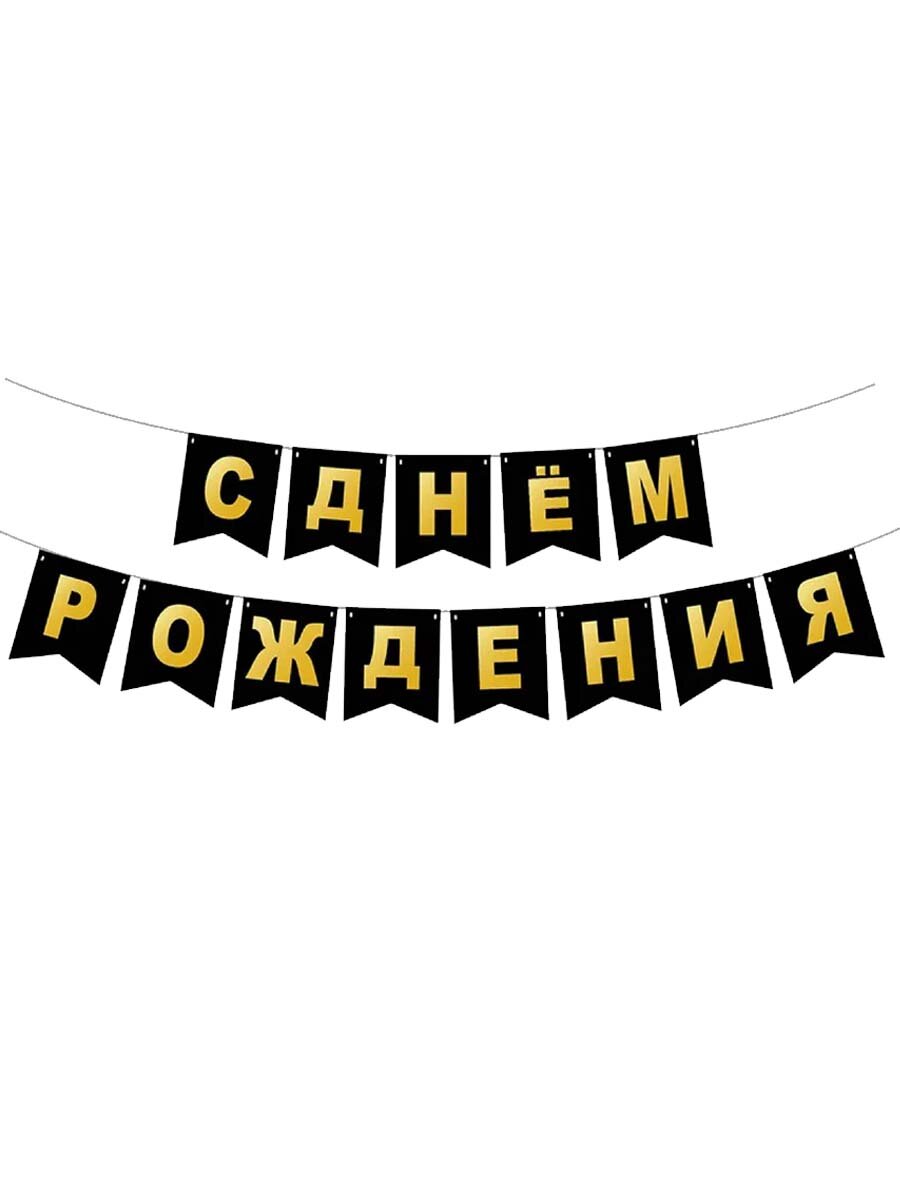 Купить Гирлянда-растяжка бумажная "С днем рождения" черная, до 3 метров