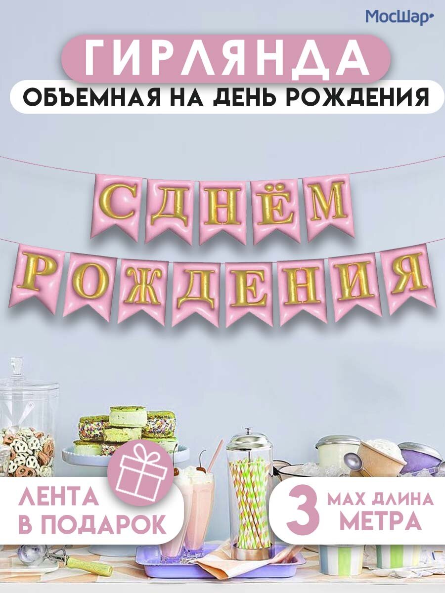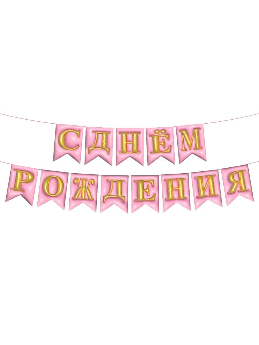 Гирлянда , МосШар "С Днем Рождения", розовая, 200х4х10 см