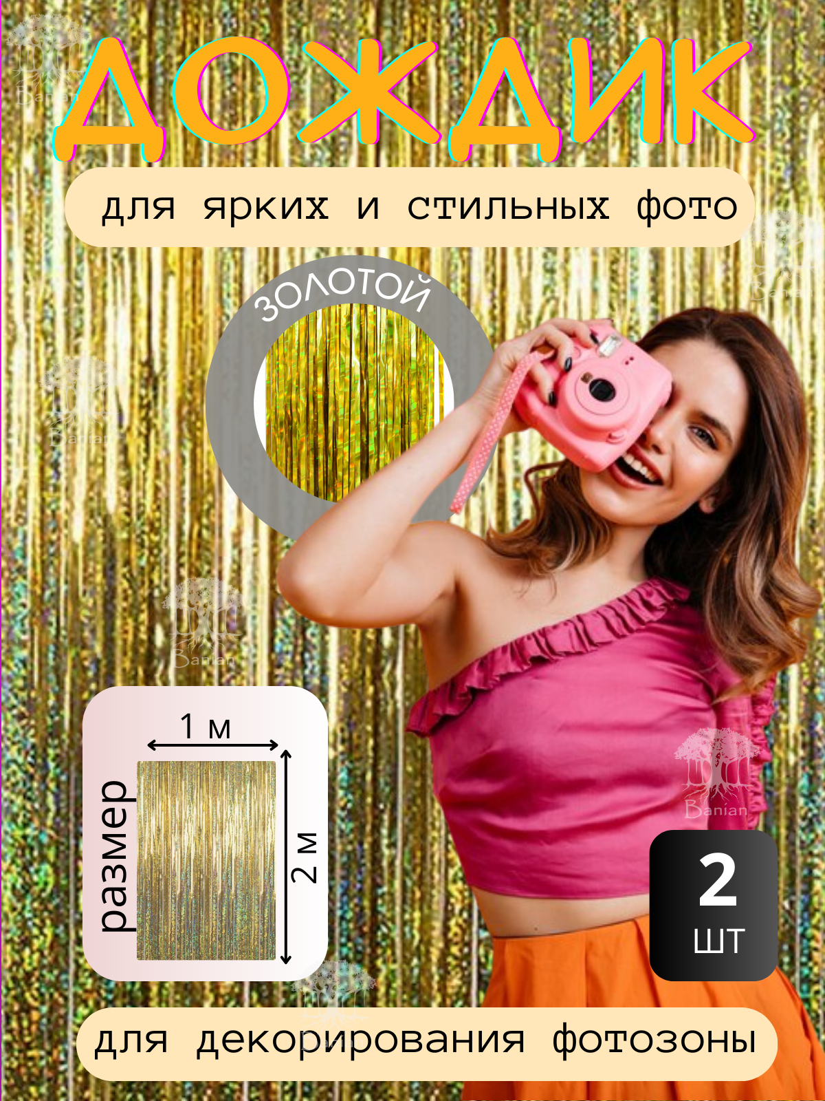 Дождик для фотозоны декоративный золотой для праздника 2 шт, 1 х 2 м интересное: