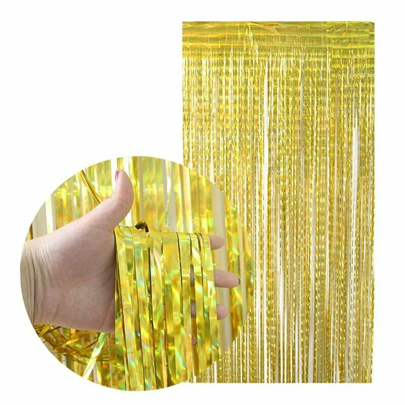 Купить Дождик для фотозоны декоративный золотой для праздника 2 шт, 1 х 2 м