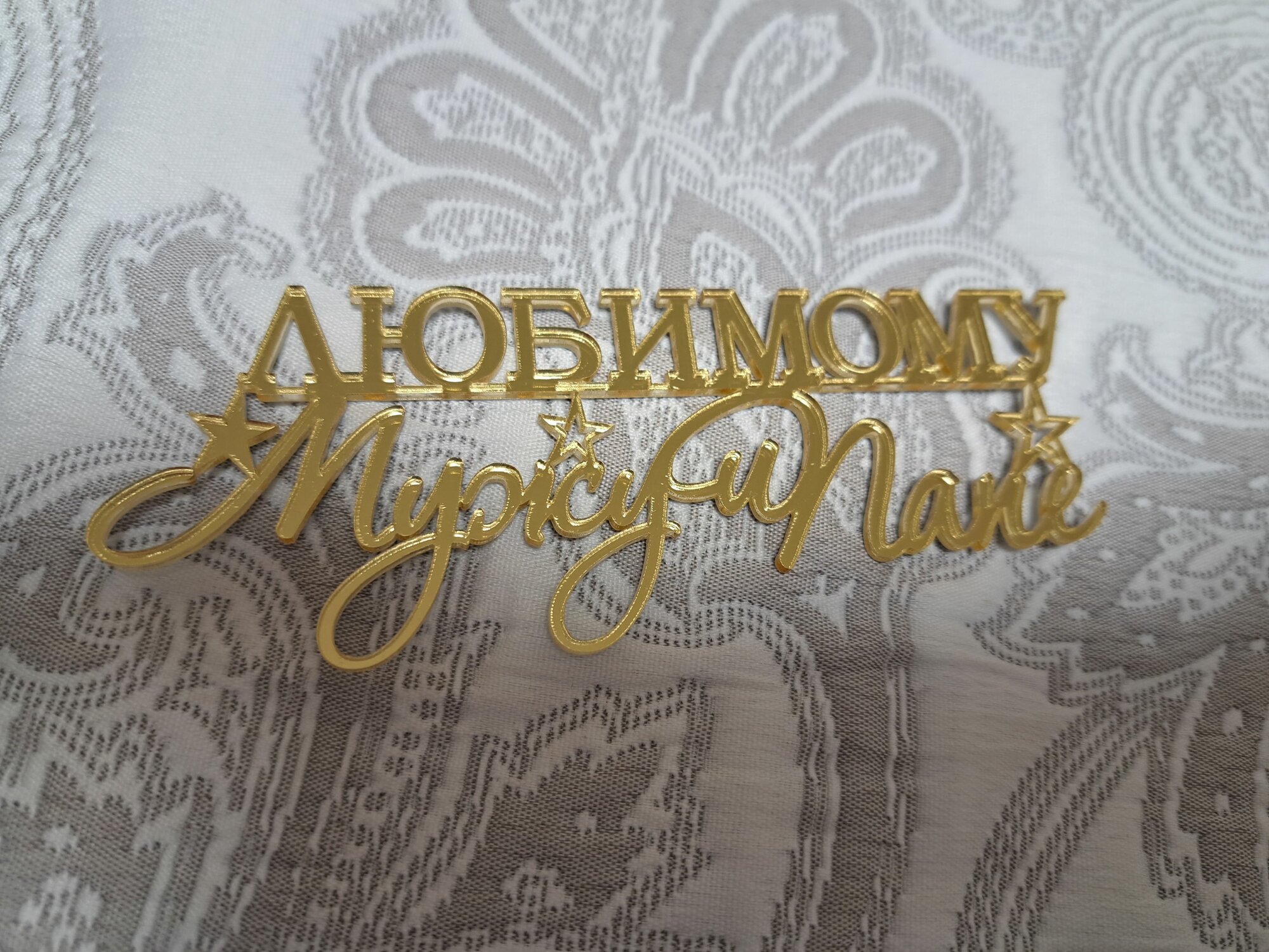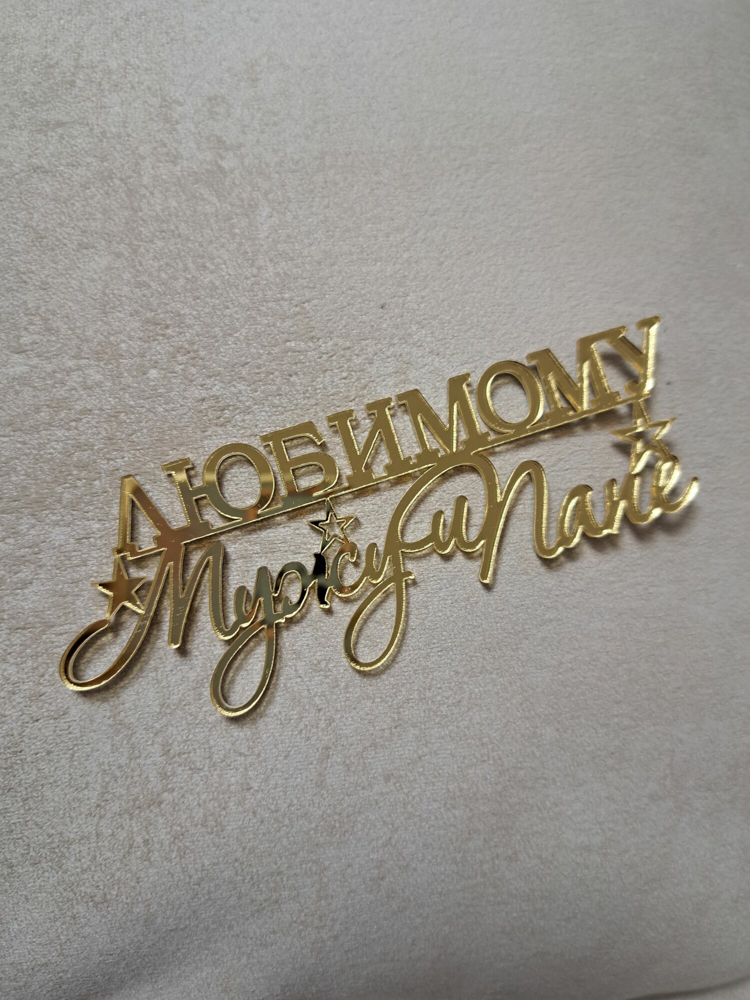Топпер на торт "Любимому мужу и папе", зеркальный золотой акрил интересное: