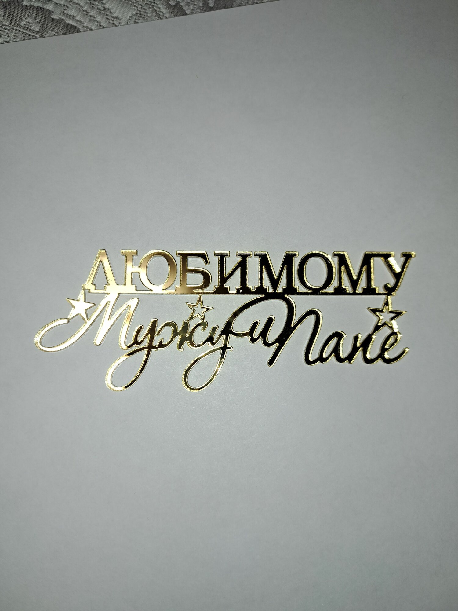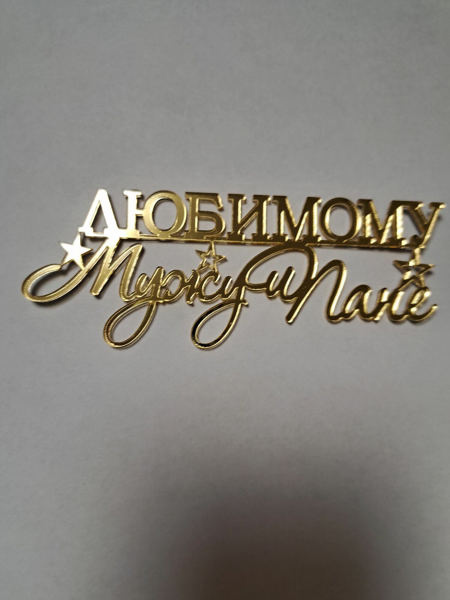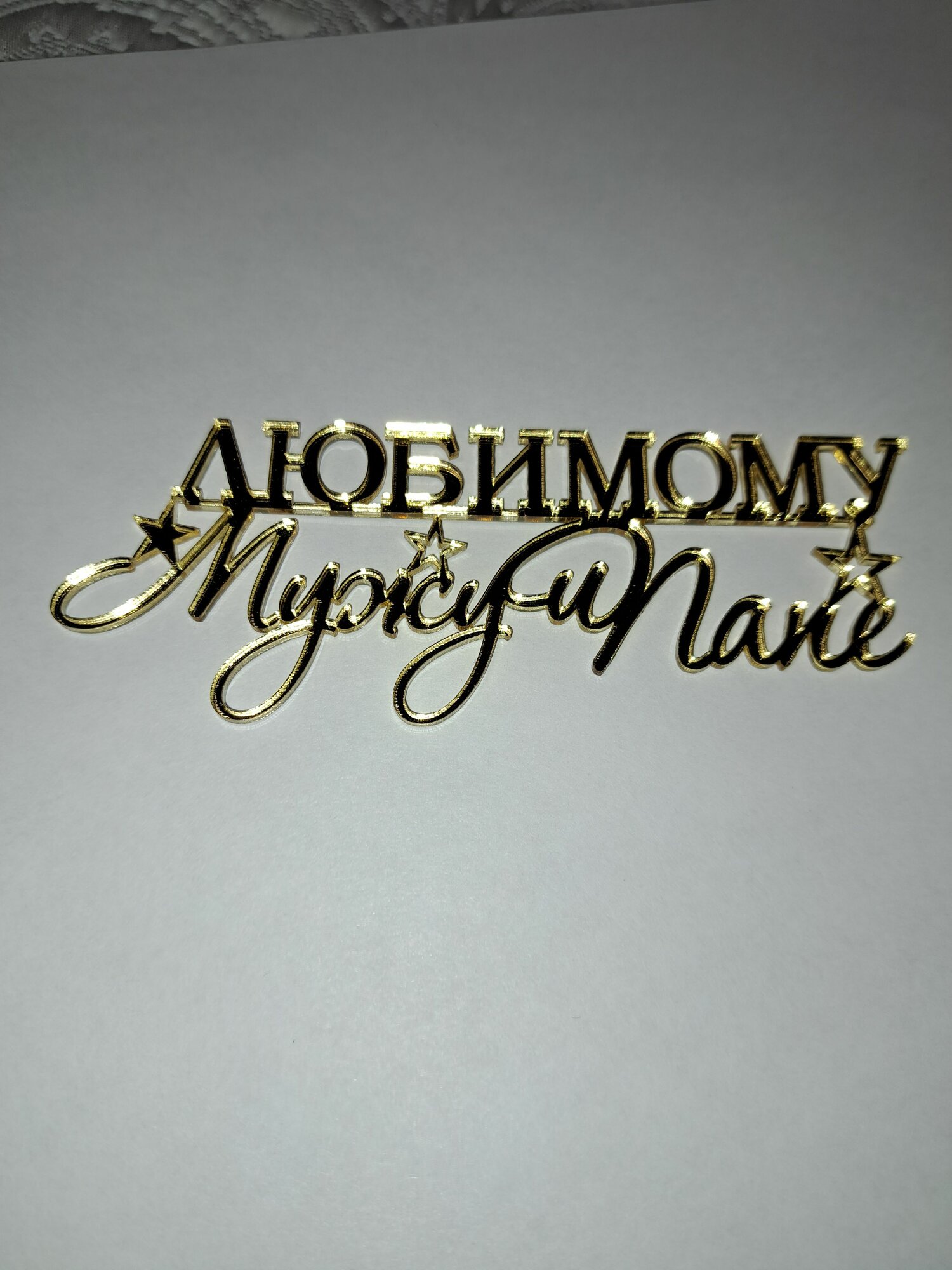 Купить Топпер на торт "Любимому мужу и папе", зеркальный золотой акрил