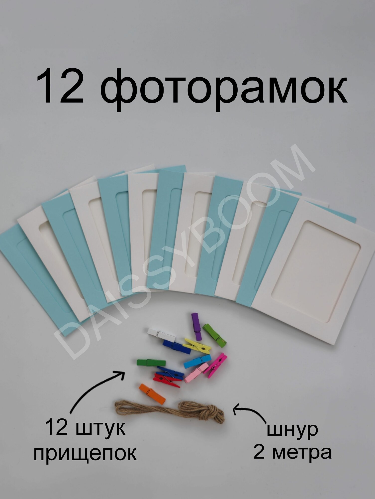 Купить Растяжка для фотографий для праздника. Голубые с белым 12. Фоторамки с прищепками