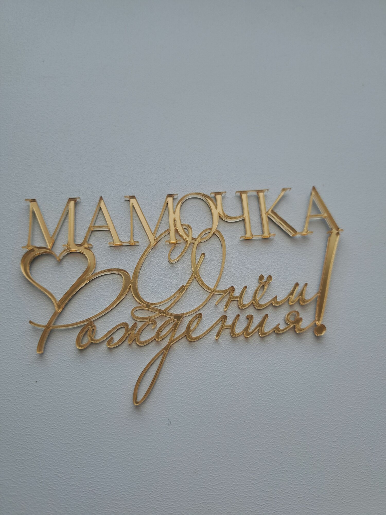 Топпер на торт "Мамочка с днём рождения", зеркальный золотой акрил интересное: