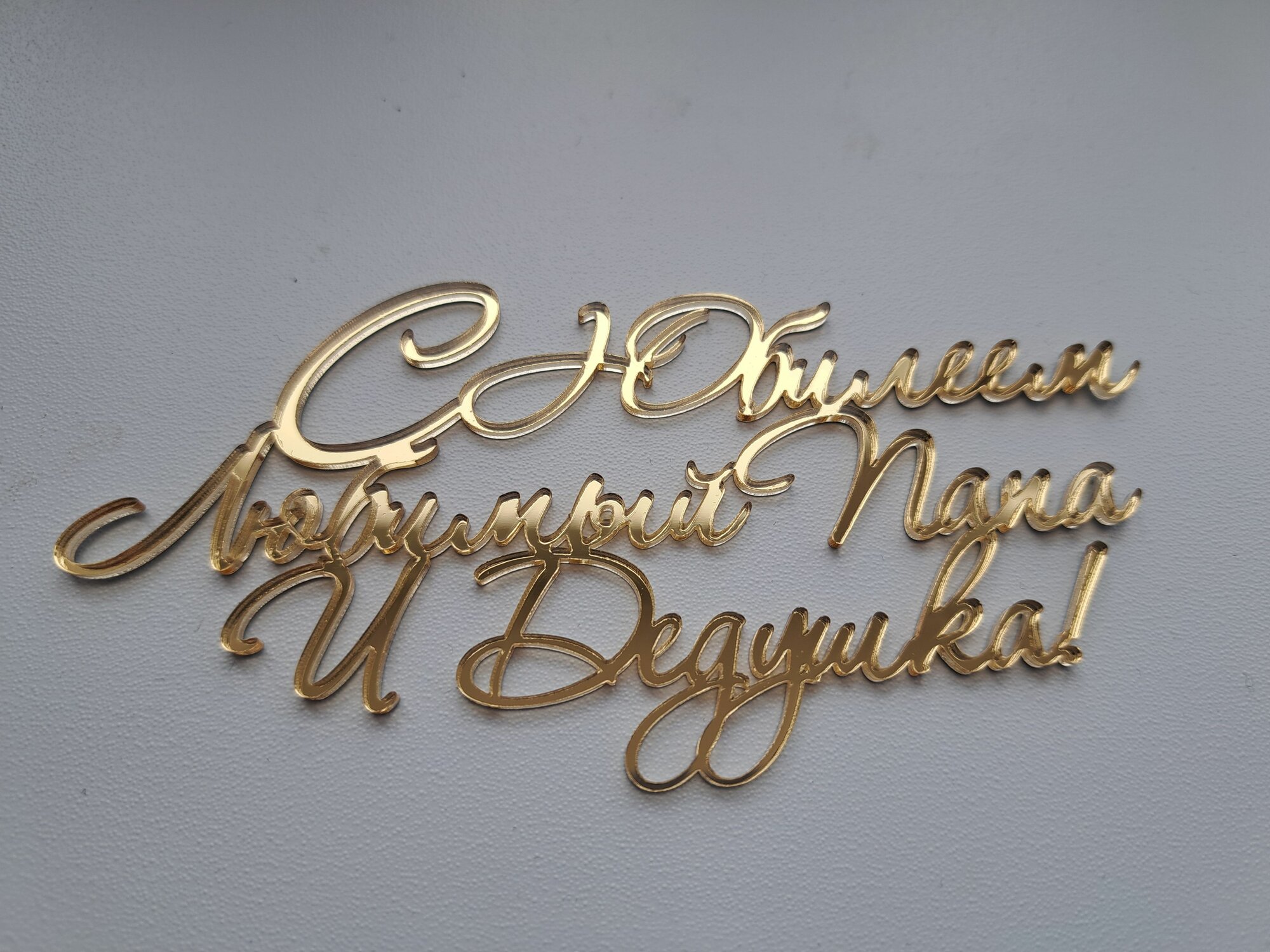 Топпер на торт "С юбилеем любимый папа и дедушка", зеркальный золотой акрил интересное: