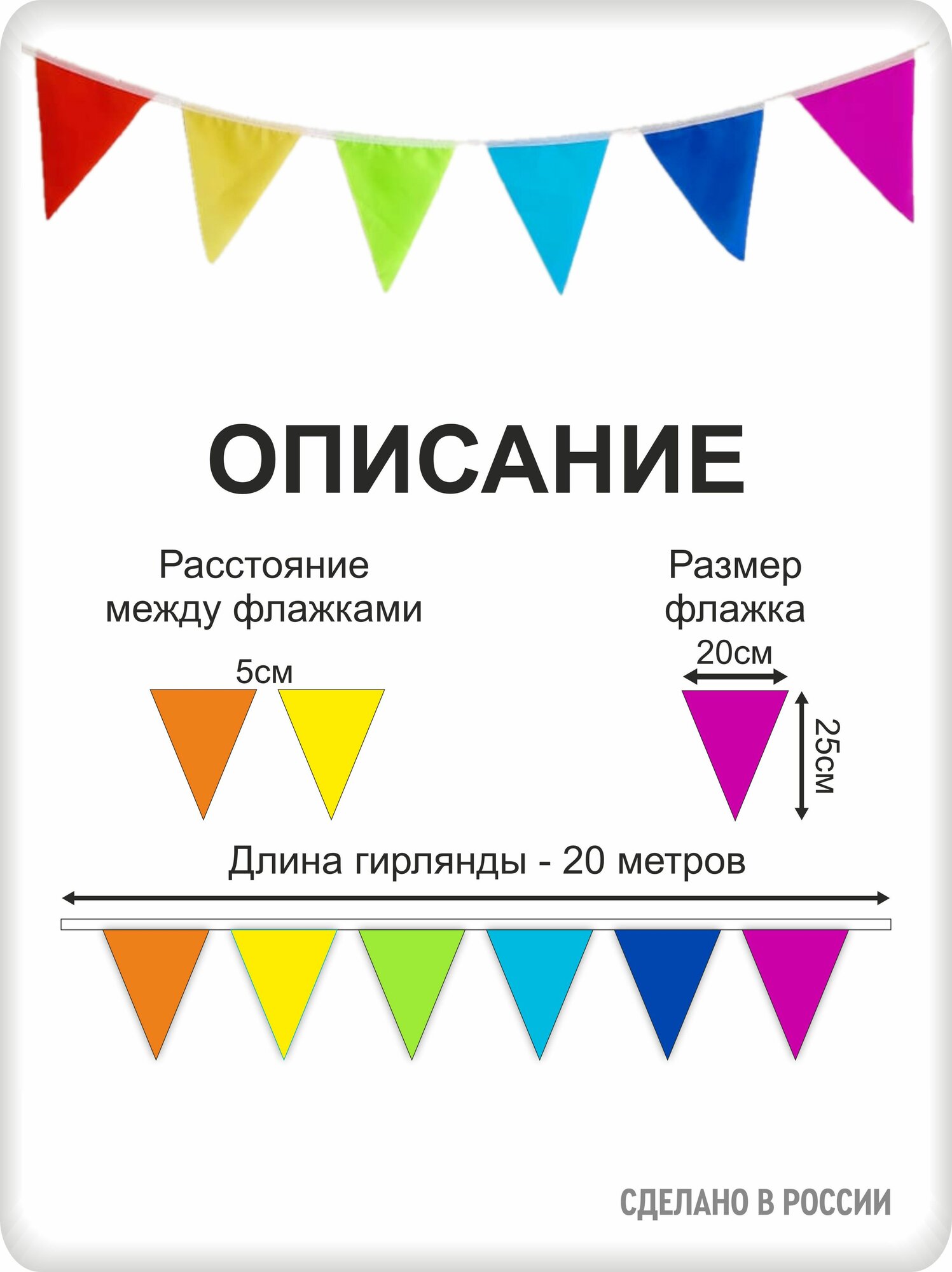 Купить Гирлянда из флажков 20м разноцветная, флажки 20*25, для помещения и улицы