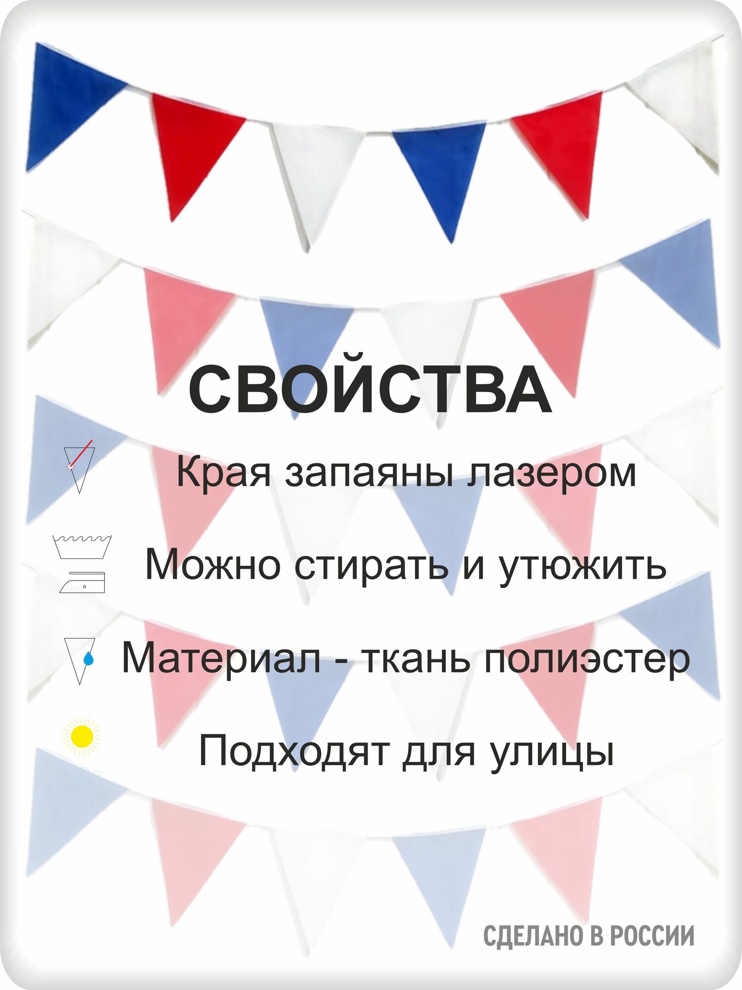 Гирлянда триколор 5м флажки 20*25, для помещения и улицы, полиэстер