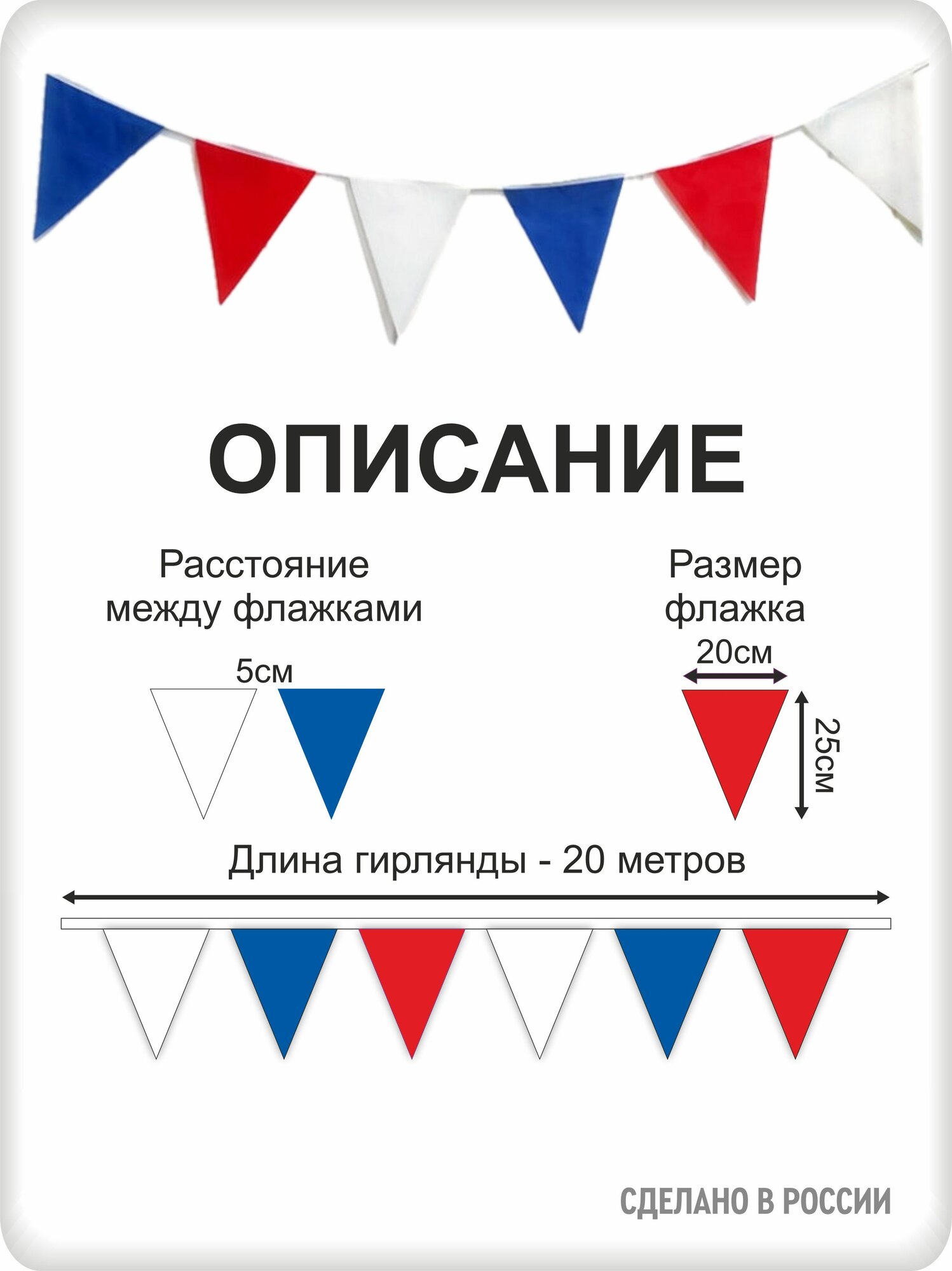 Гирлянда флажки 50м триколор флажки 20*25, для помещения и улицы