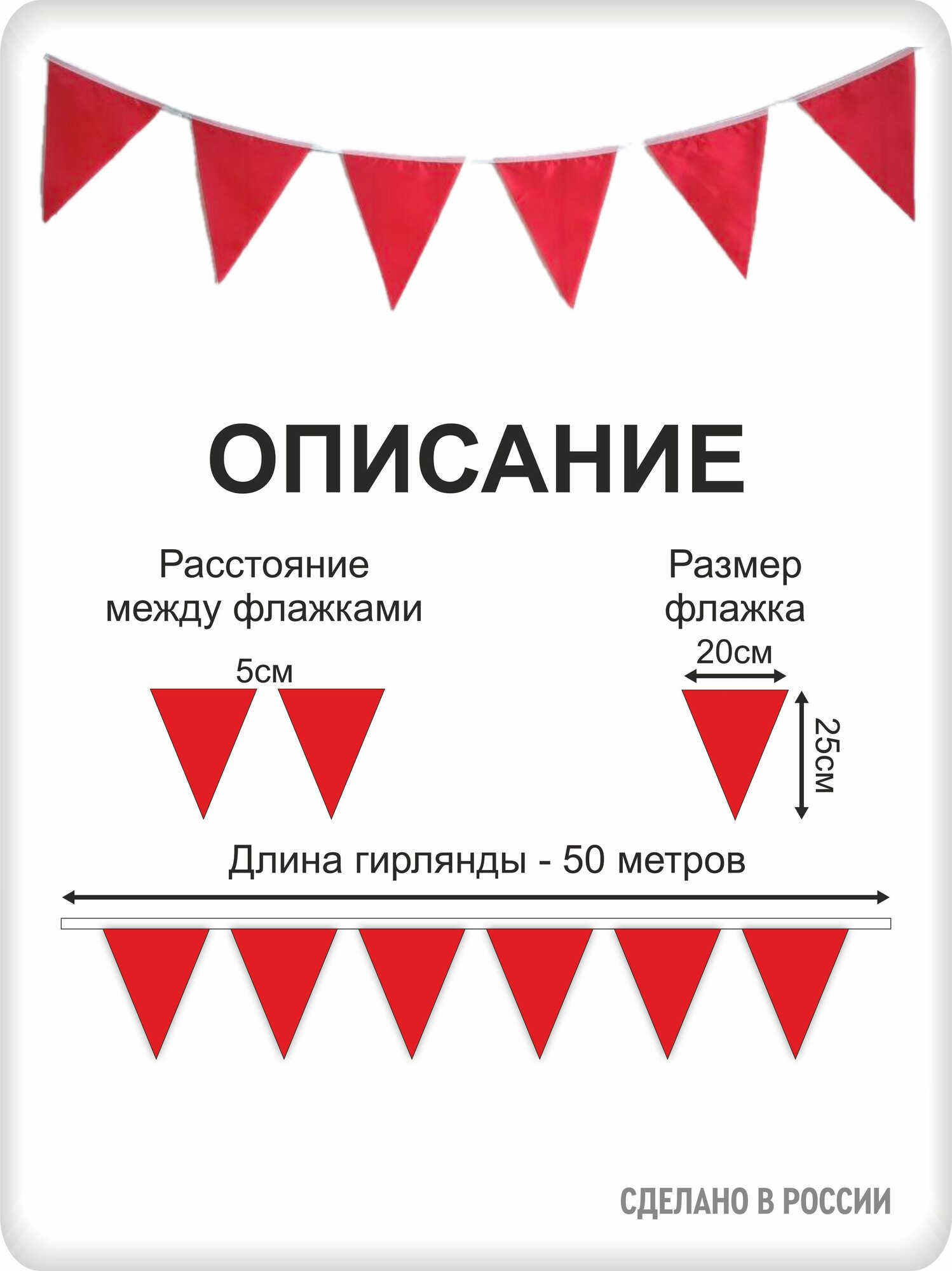 Гирлянда из флажков 20м красная 20*25, для помещения и улицы, 1 мая, 9 мая