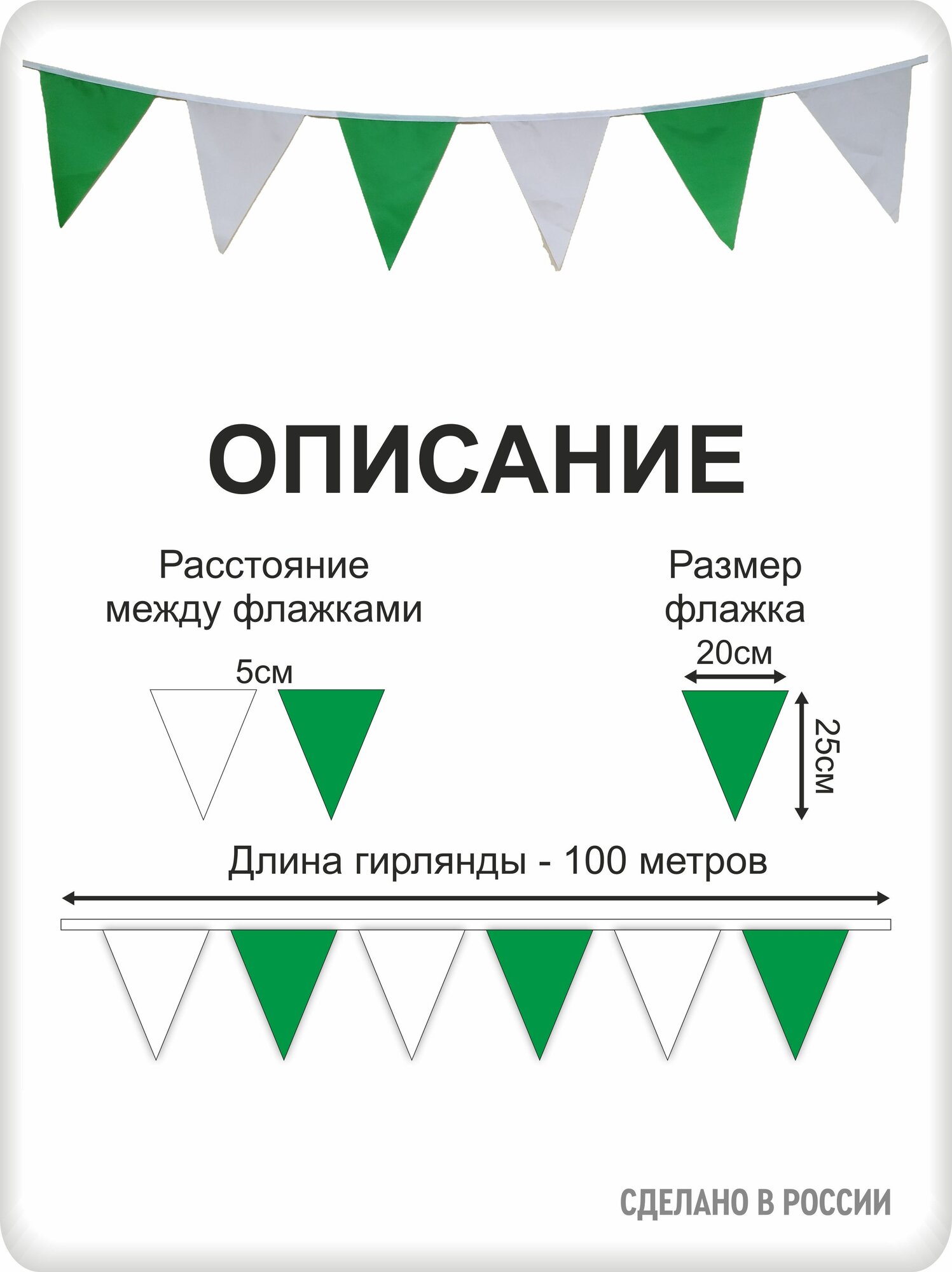Гирлянда из флажков зеленая 20м, флажки 20*25, для помещения и улицы