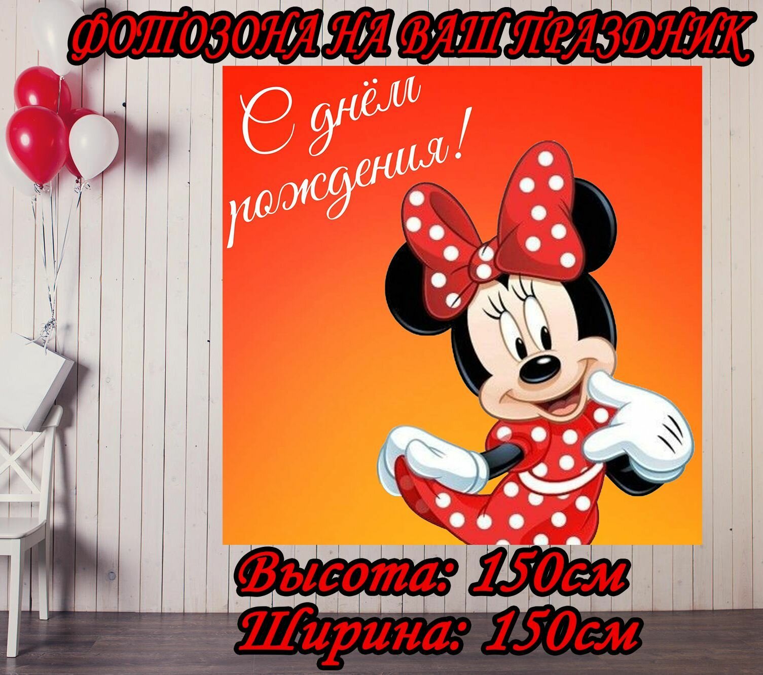 Баннер праздничный минни маус яркий 150х150см для детского дня рождения, фотозона интересное: