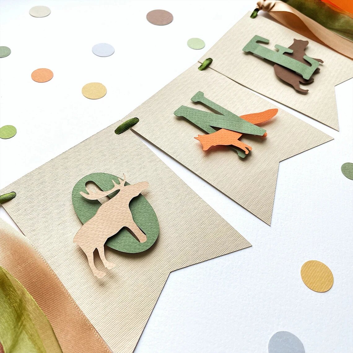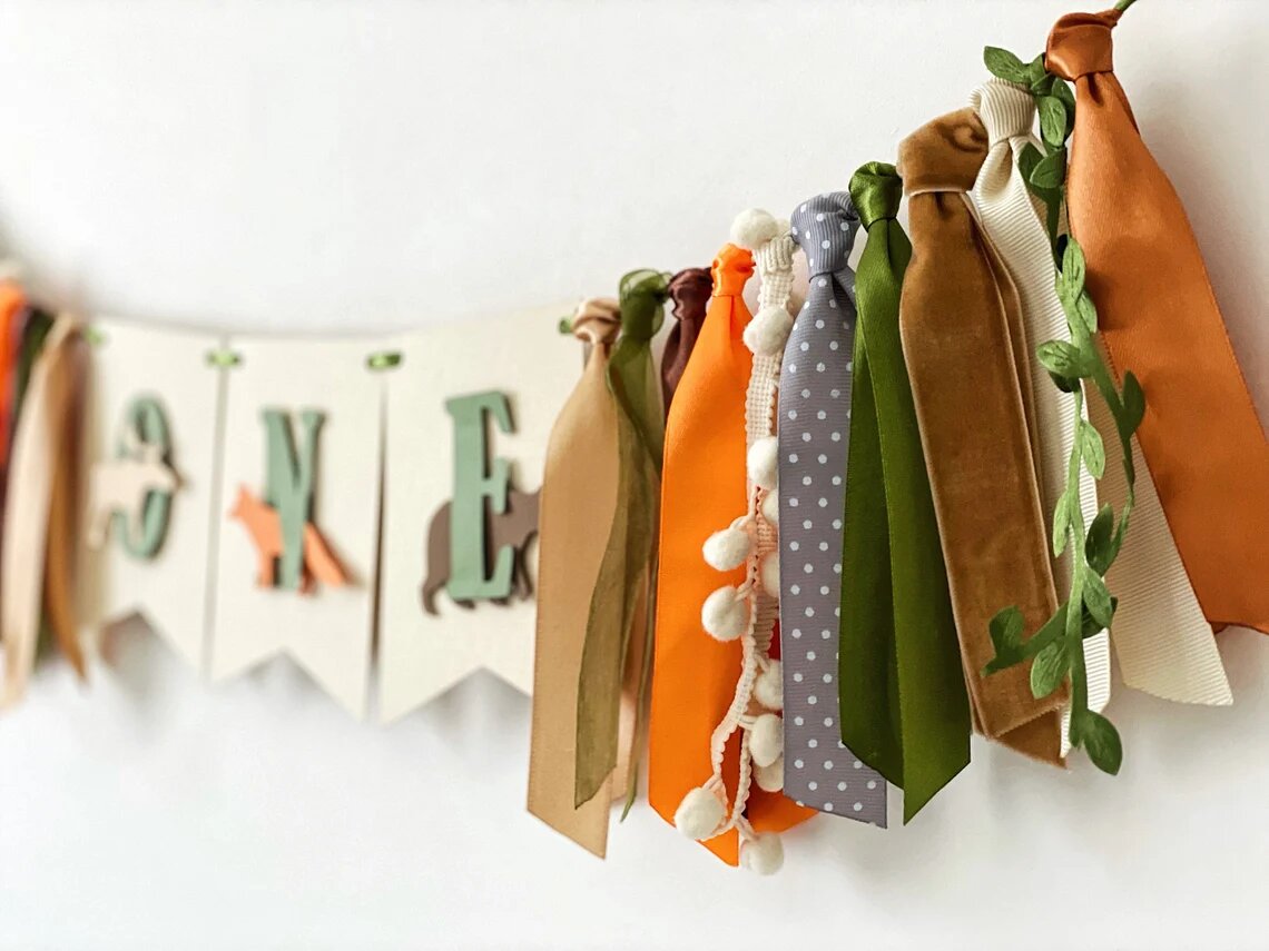 Растяжка флажки с лентами ONE для стульчика для кормления лесные животные интересное: