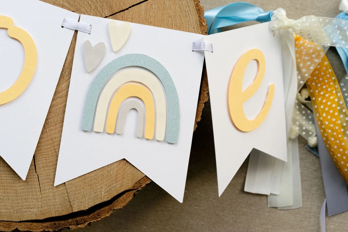 Растяжка флажки с лентами ONE на день рождения желтая интересное: