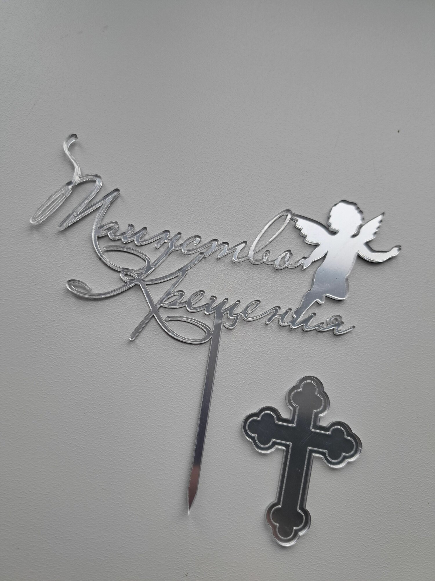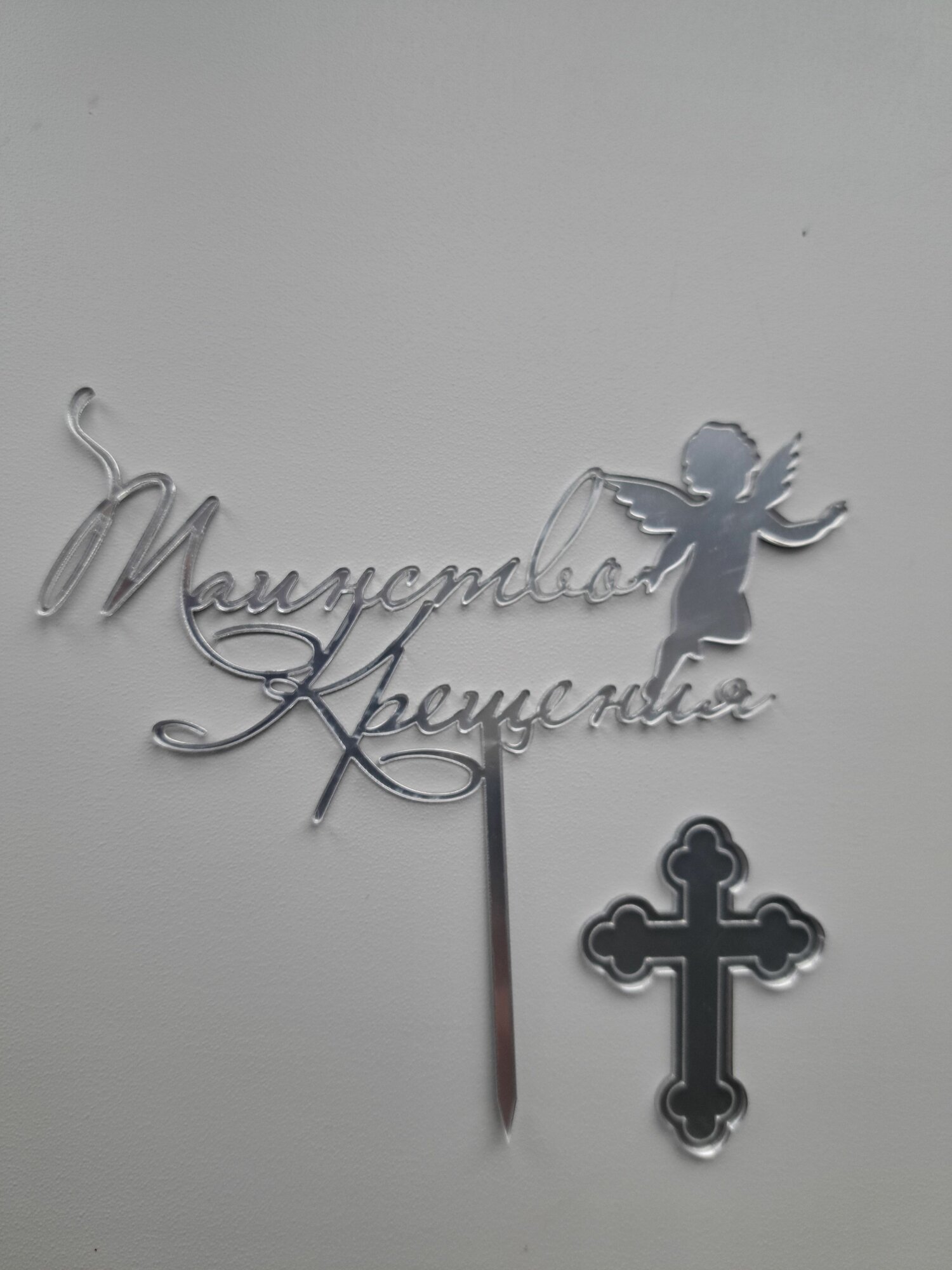 Купить Топпер на торт "Крест, Таинство крещения с палочкой ", серебрянный зеркальный акрил
