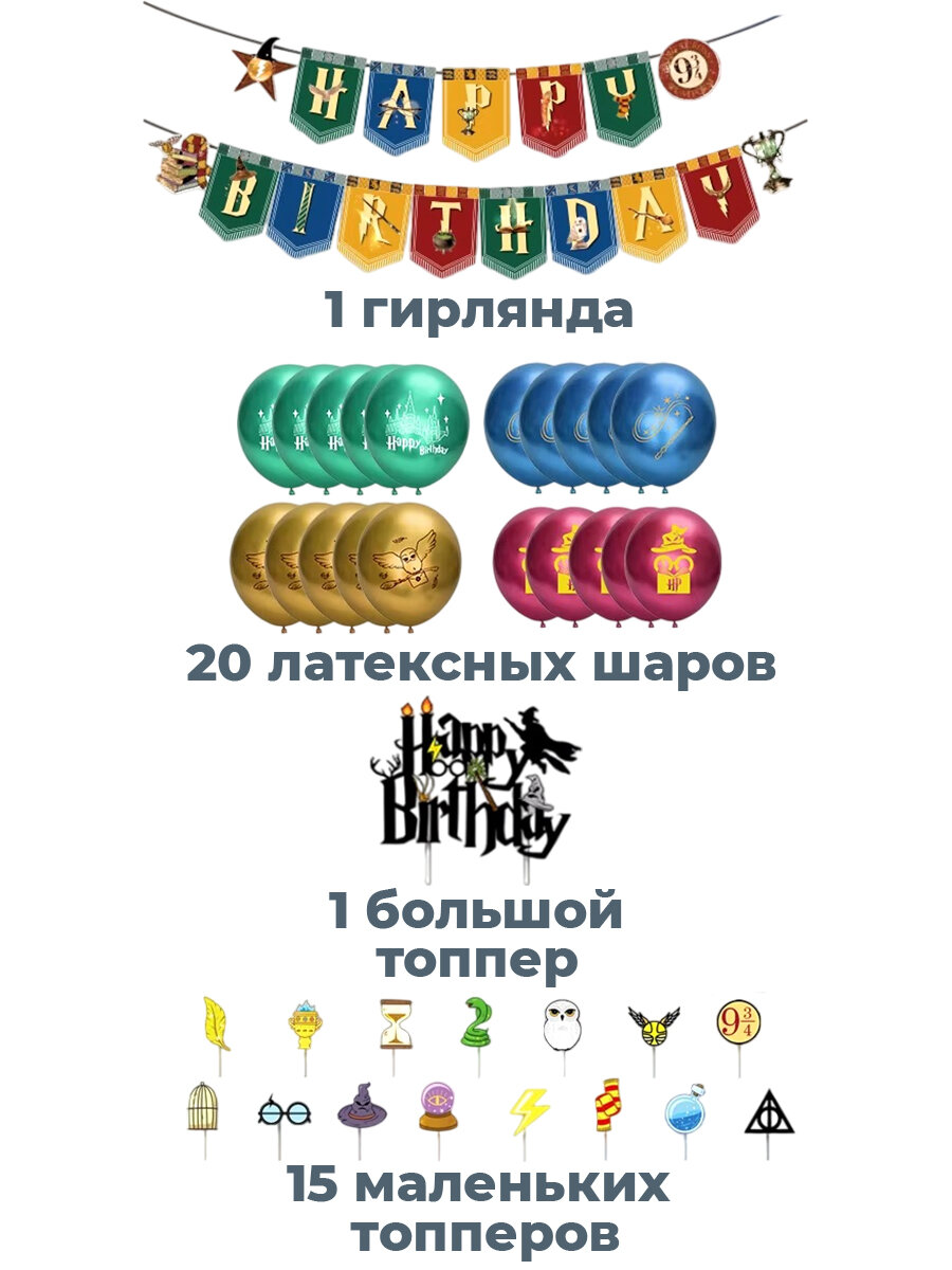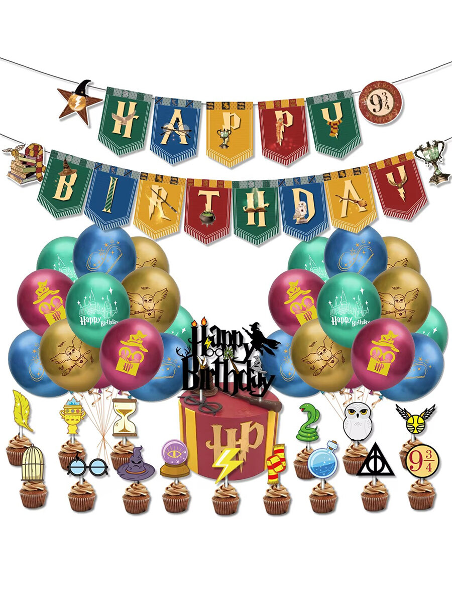 Купить Декор набор С днем рождения Гарри Поттер Harry Potter гирлянда топперы шары ленты