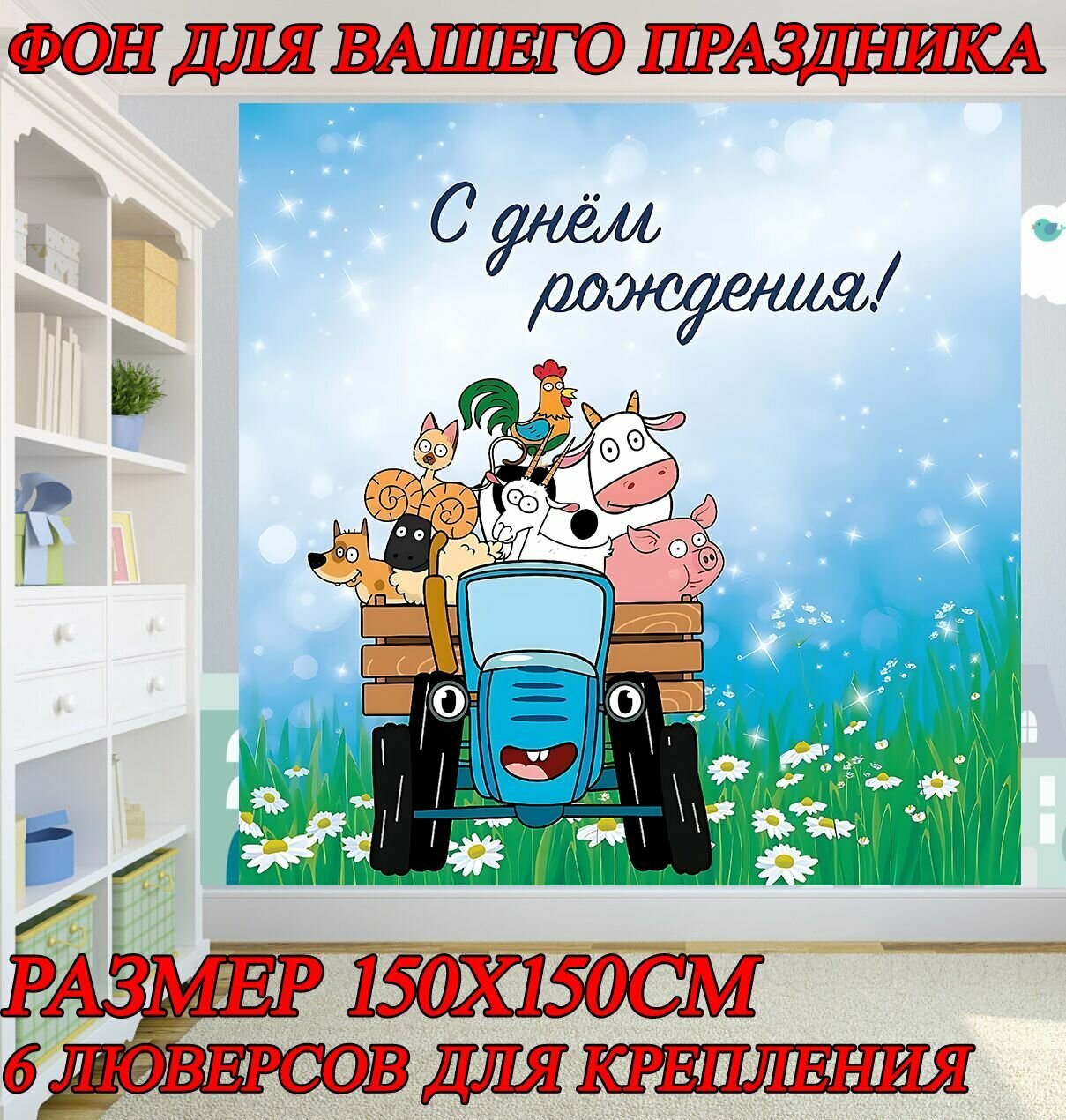 Купить Баннер праздничный Синий Трактор 150х150см для детского дня рождения, фотозона