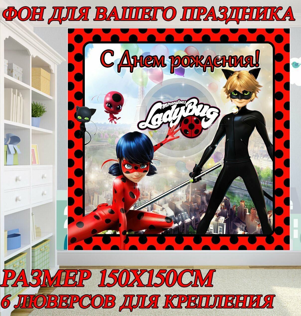 Купить Баннер праздничный Леди Баг и Супер Кот 150х150см для детского дня рождения, фотозона