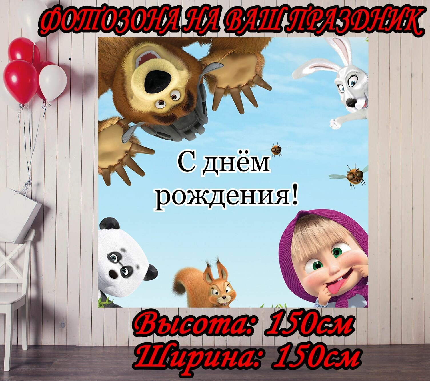 Купить Баннер праздничный Маша и Медведь кругом 150х150см для детского дня рождения, фотозона
