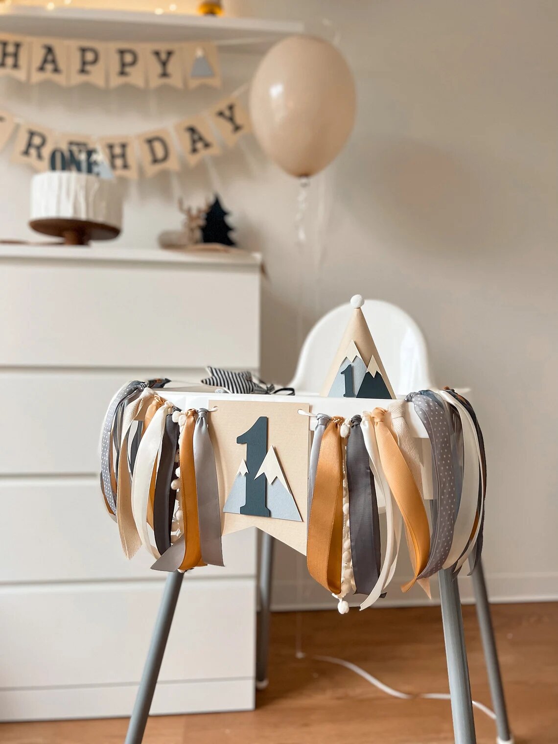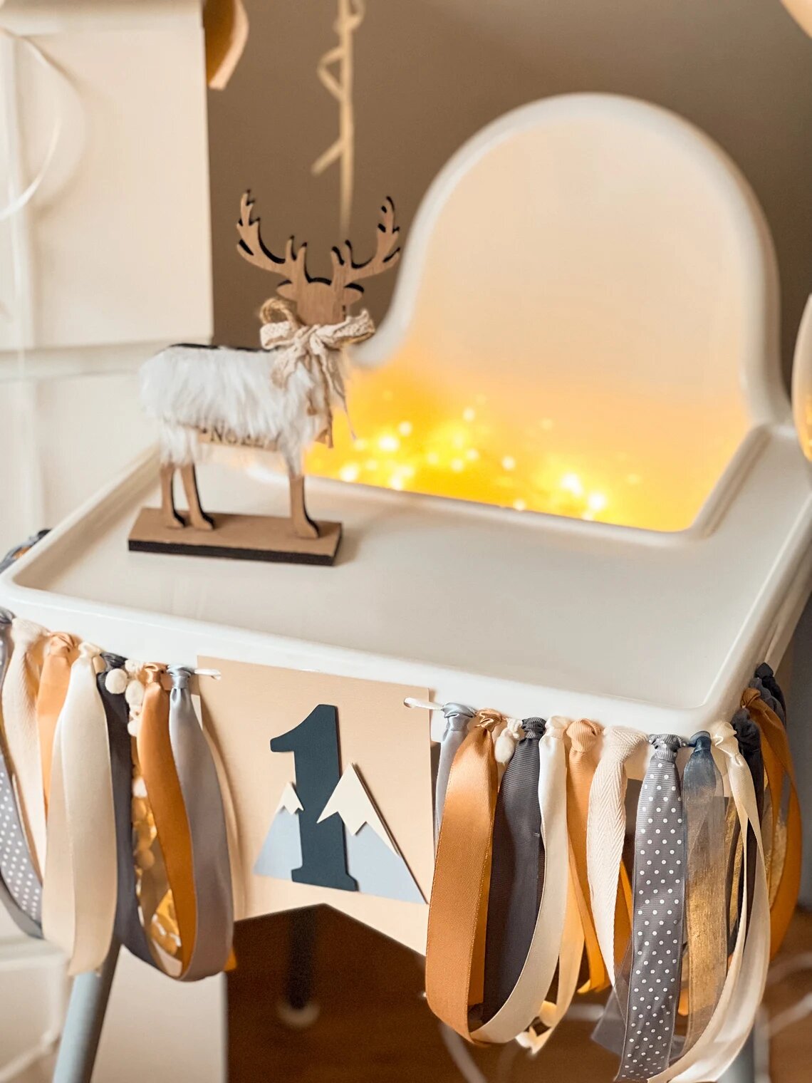 Растяжка флажки с лентами ONE для стульчика для кормления интересное: