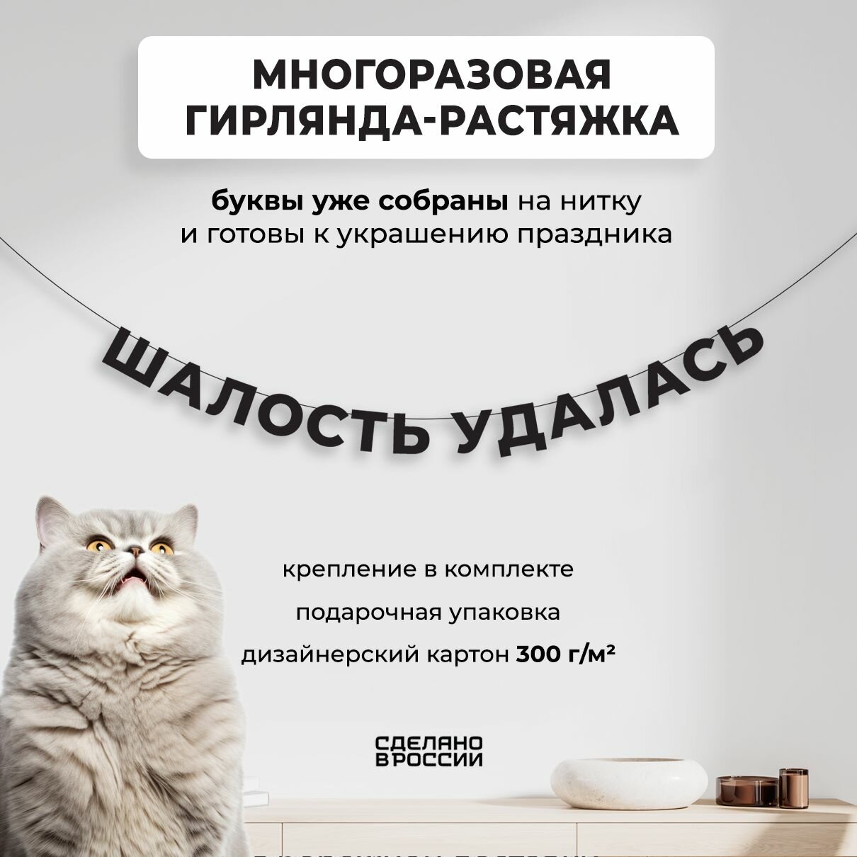 Купить Гирлянда-растяжка бумажная шалость удалась (180 см) - уютный декор и стильный подарок себе или близкому человеку