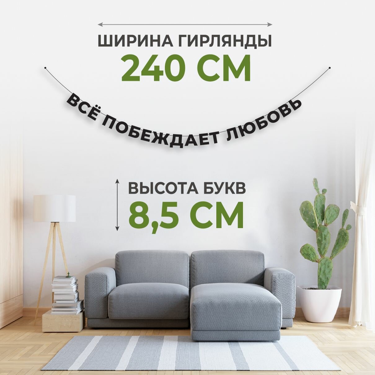 Купить Гирлянда-растяжка бумажная ВСЁ побеждает любовь (240 см) - уютный декор и стильный подарок себе или близкому человеку