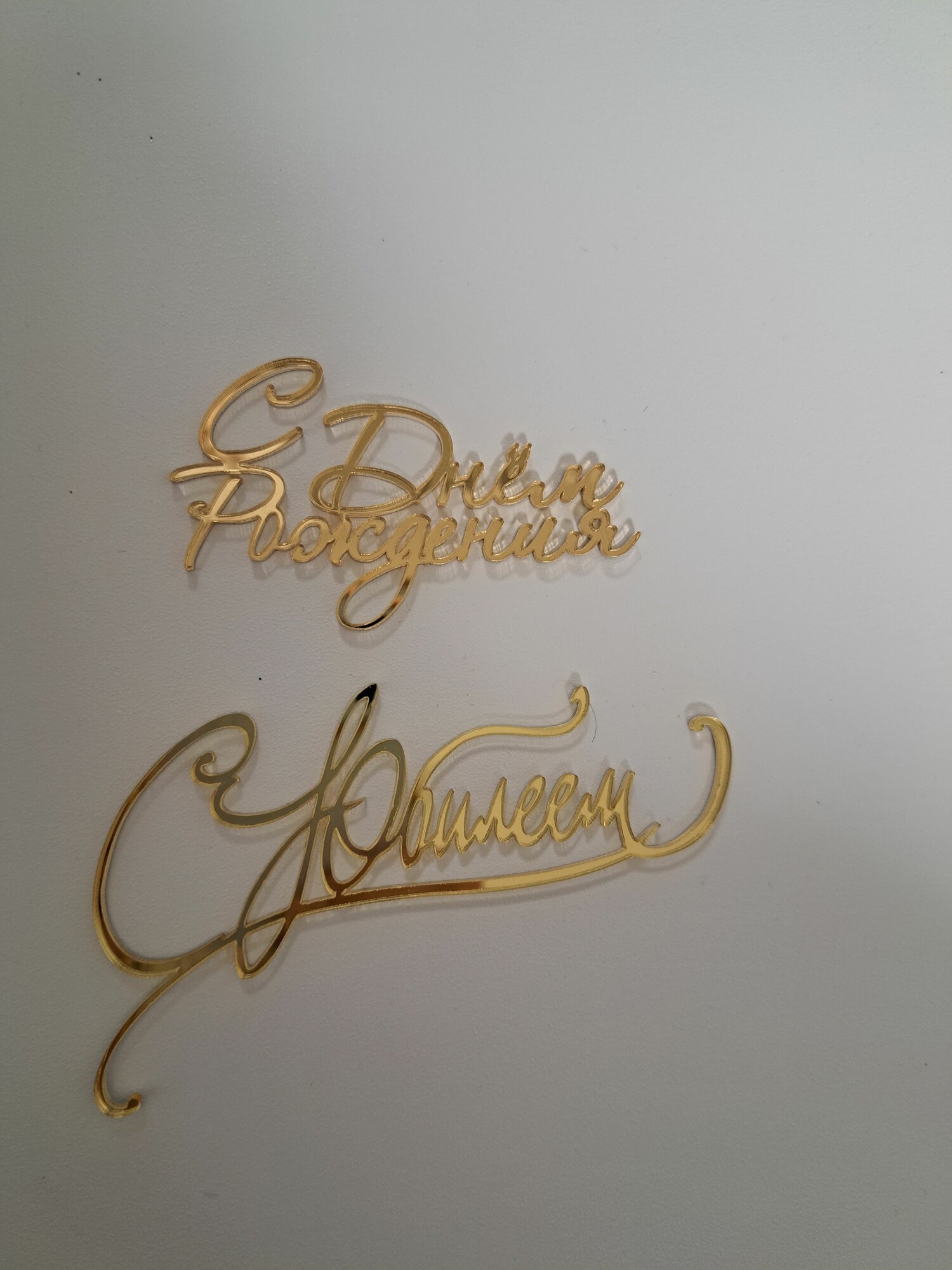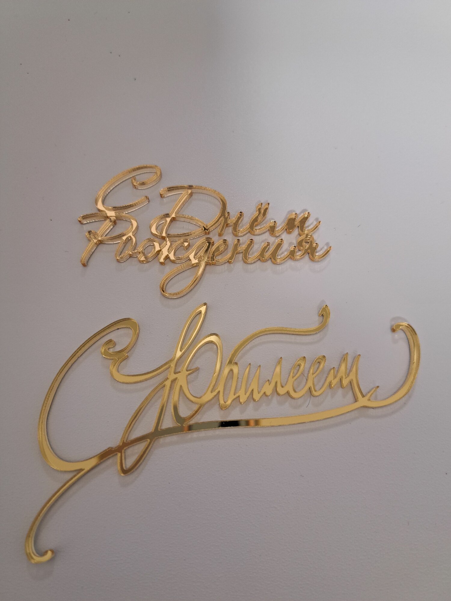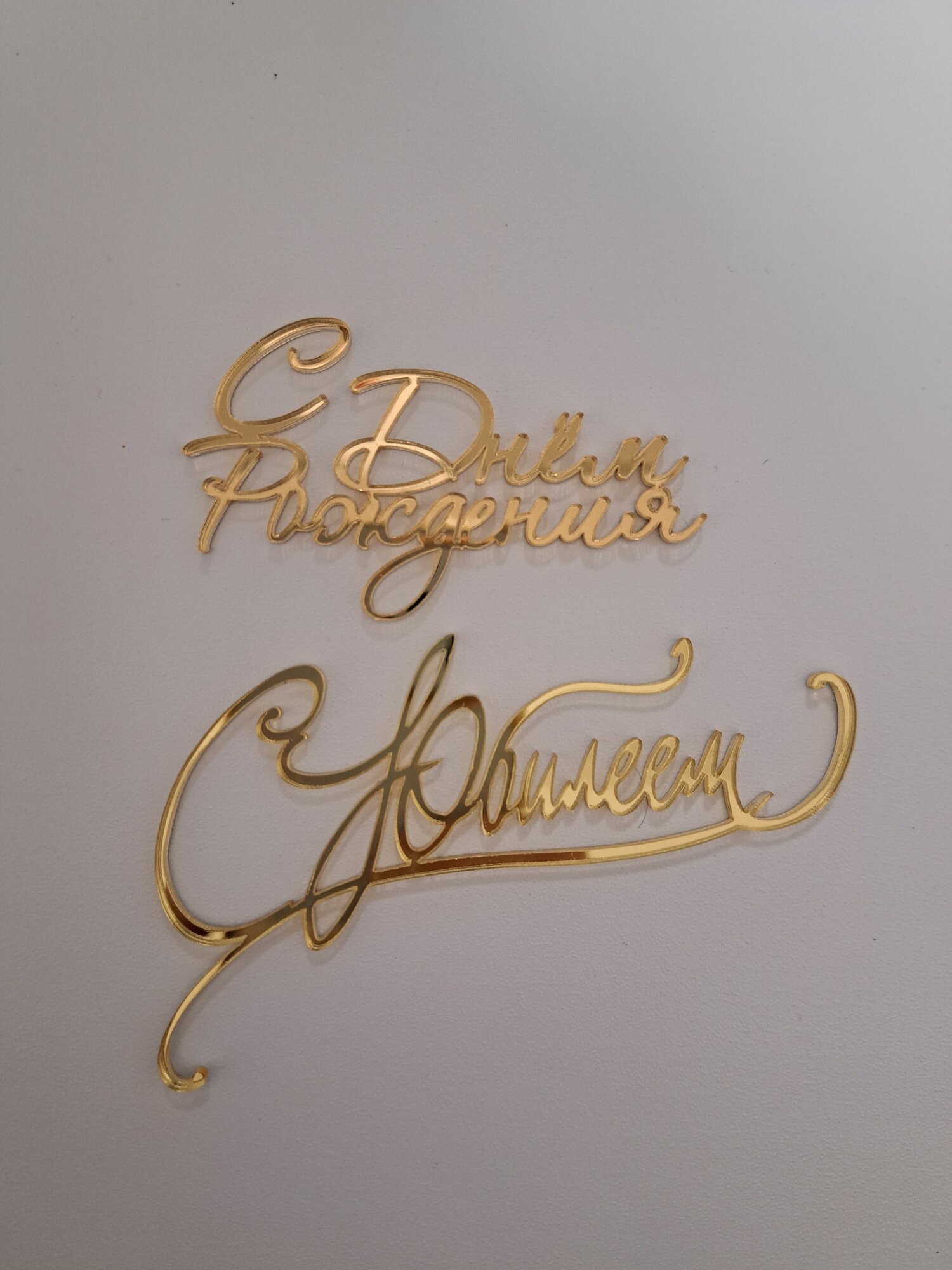 Набор топперов " С днем рождения" и "С юбилеем", зеркальный золотой акрил интересное:
