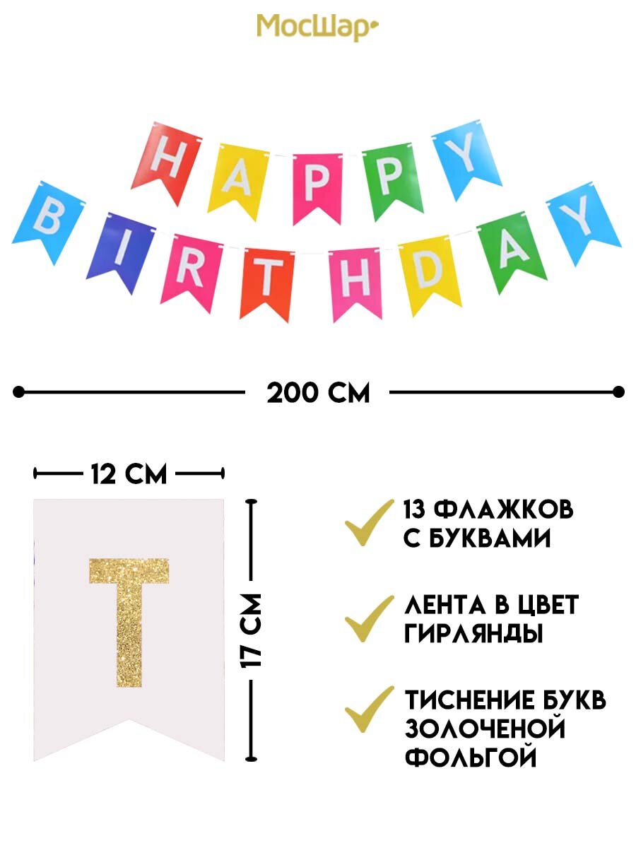 Купить Гирлянда-растяжка бумажная "Happy birthday" разноцветная, 2 метра