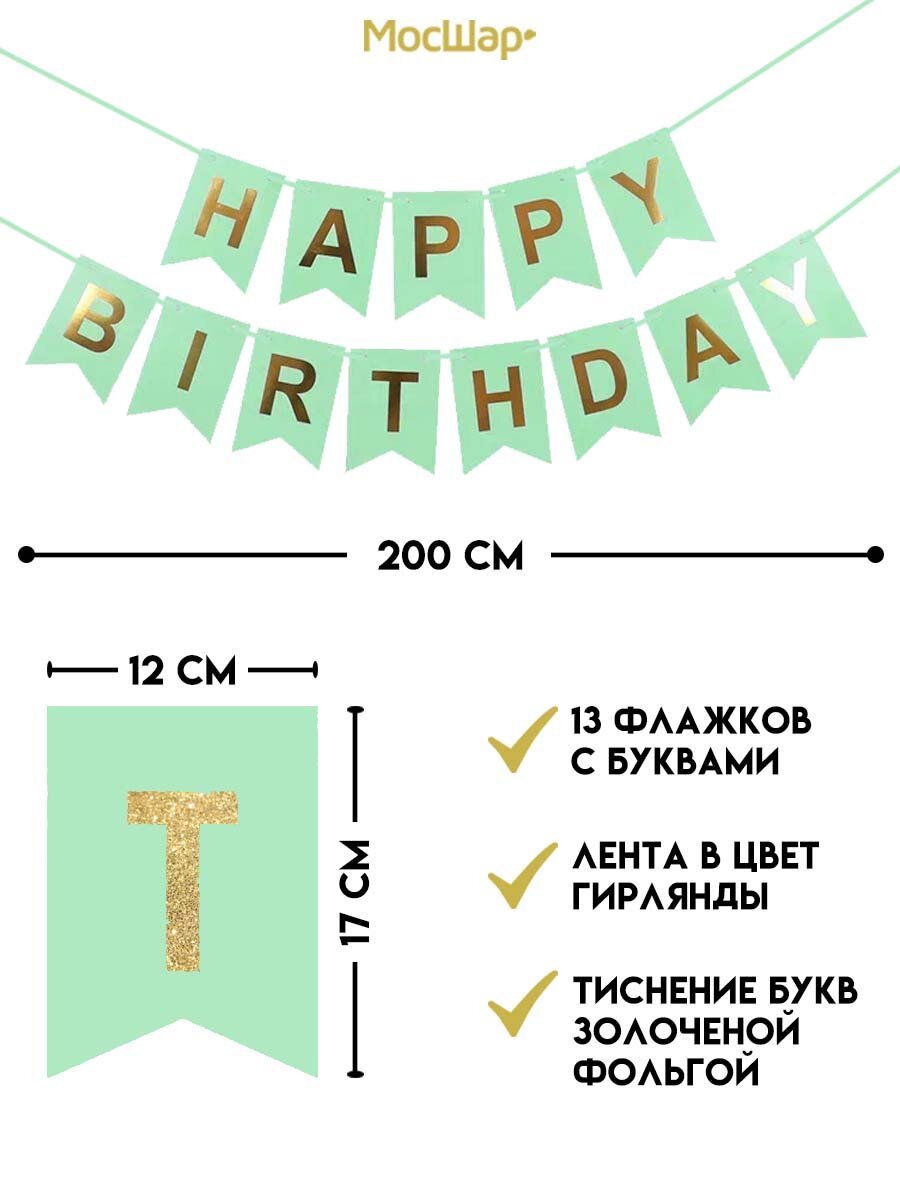 Купить Гирлянда-растяжка бумажная "Happy birthday" зеленая, 2 метра