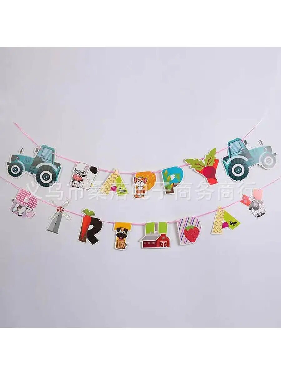 СохранитьГирлянда бумажная растяжка на день рождения Happy Birthday, трактор интересное:
