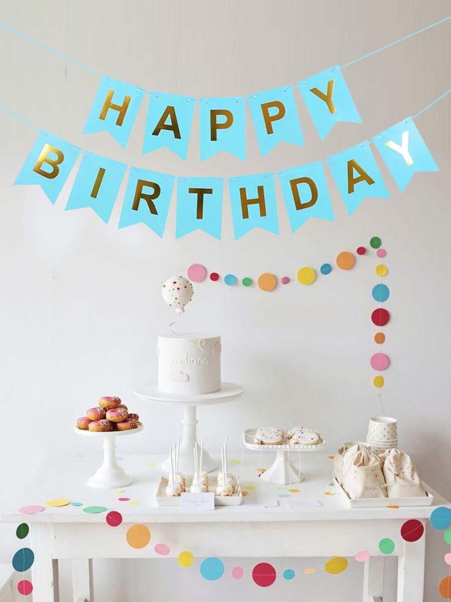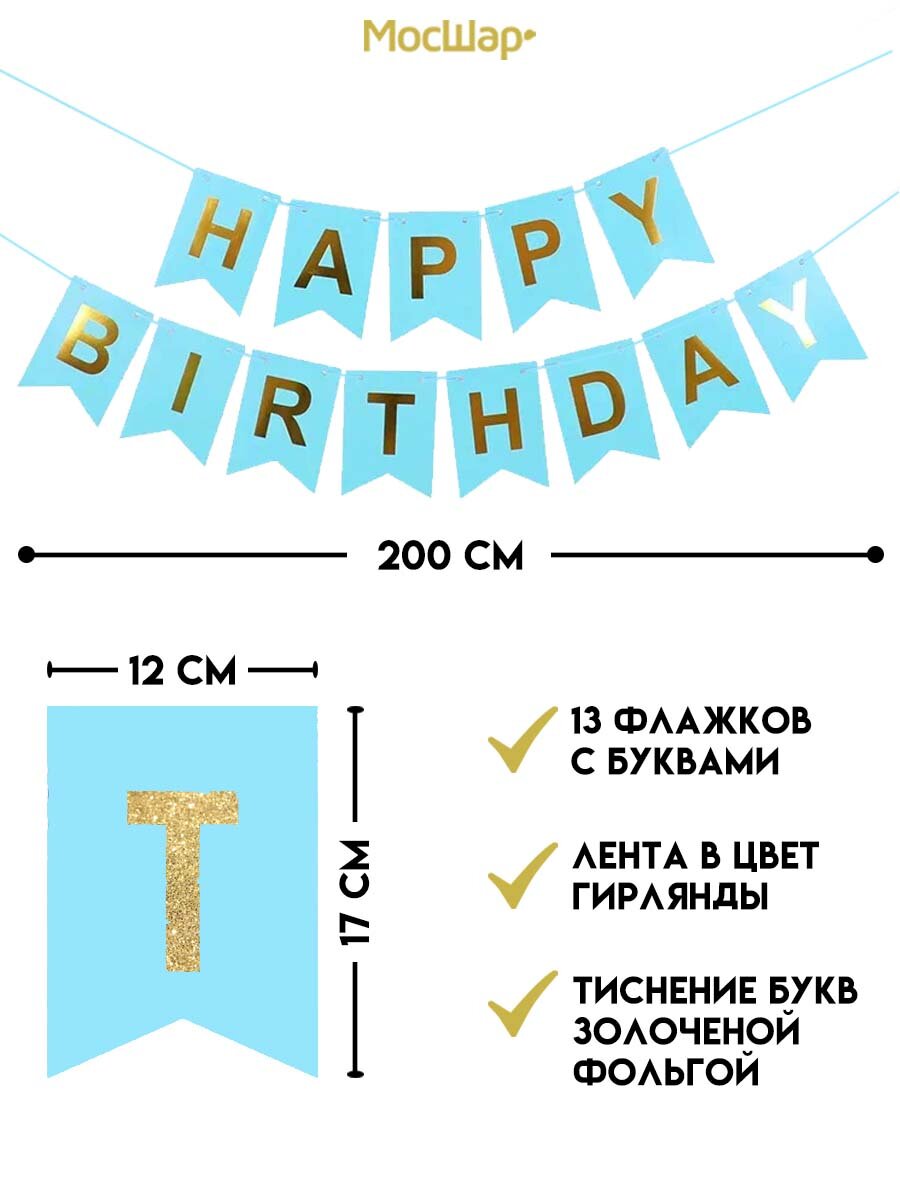 Купить Гирлянда-растяжка бумажная "Happy birthday" голубая, 2 метра