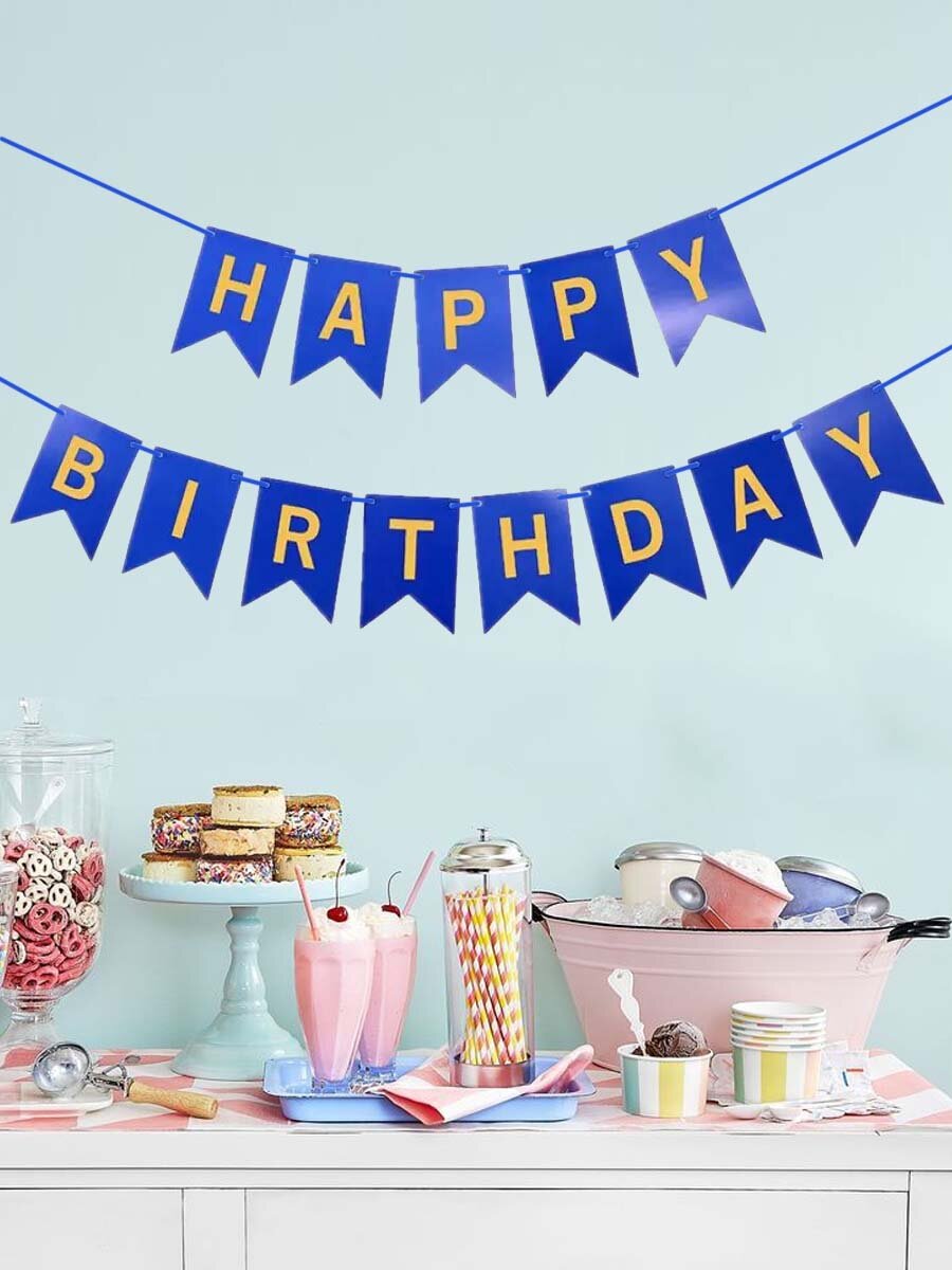 Гирлянда-растяжка бумажная "Happy birthday" голубая, 2 метра