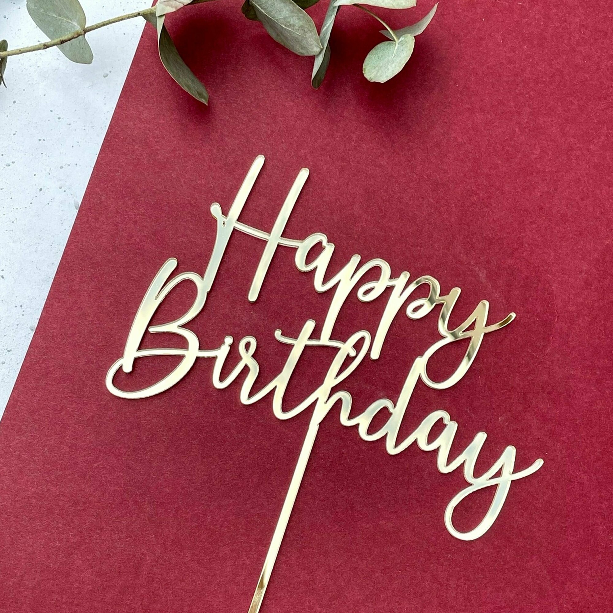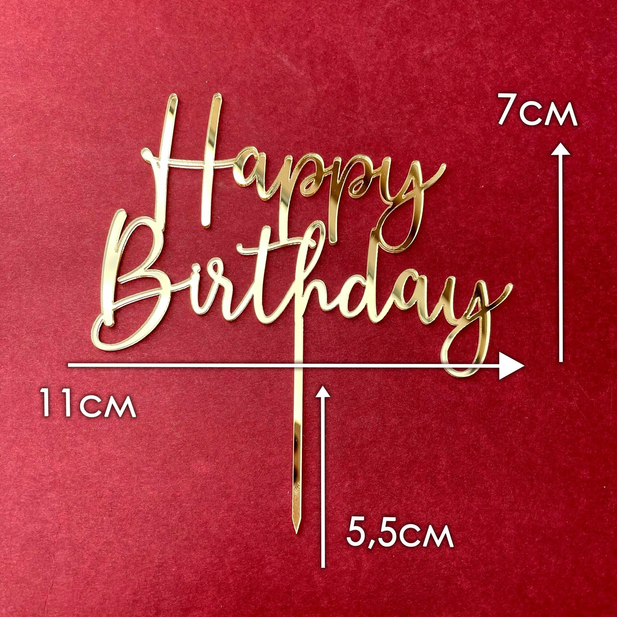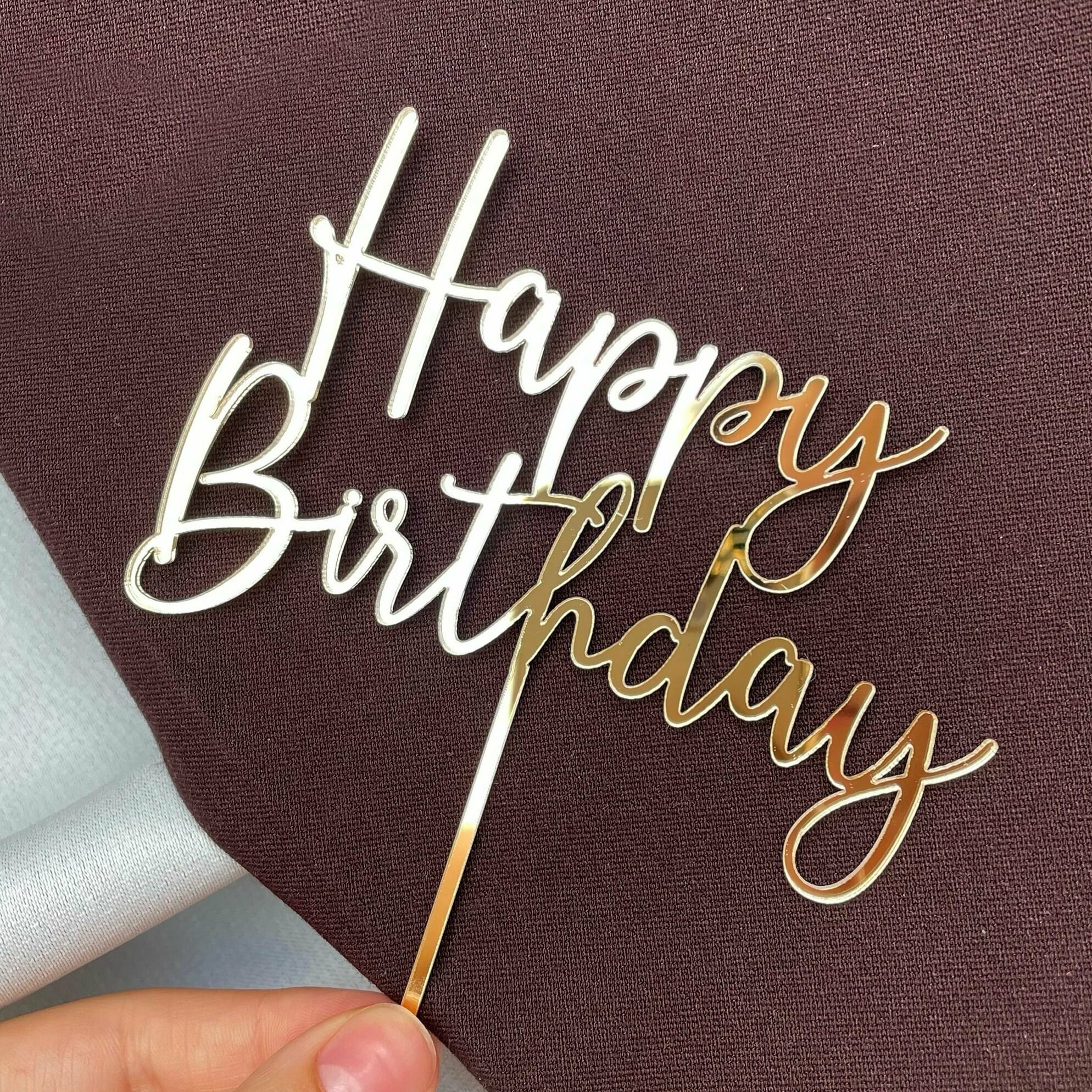 Купить Топпер на торт на палочке "Happy Birthday №5", золотой зеркальный акрил