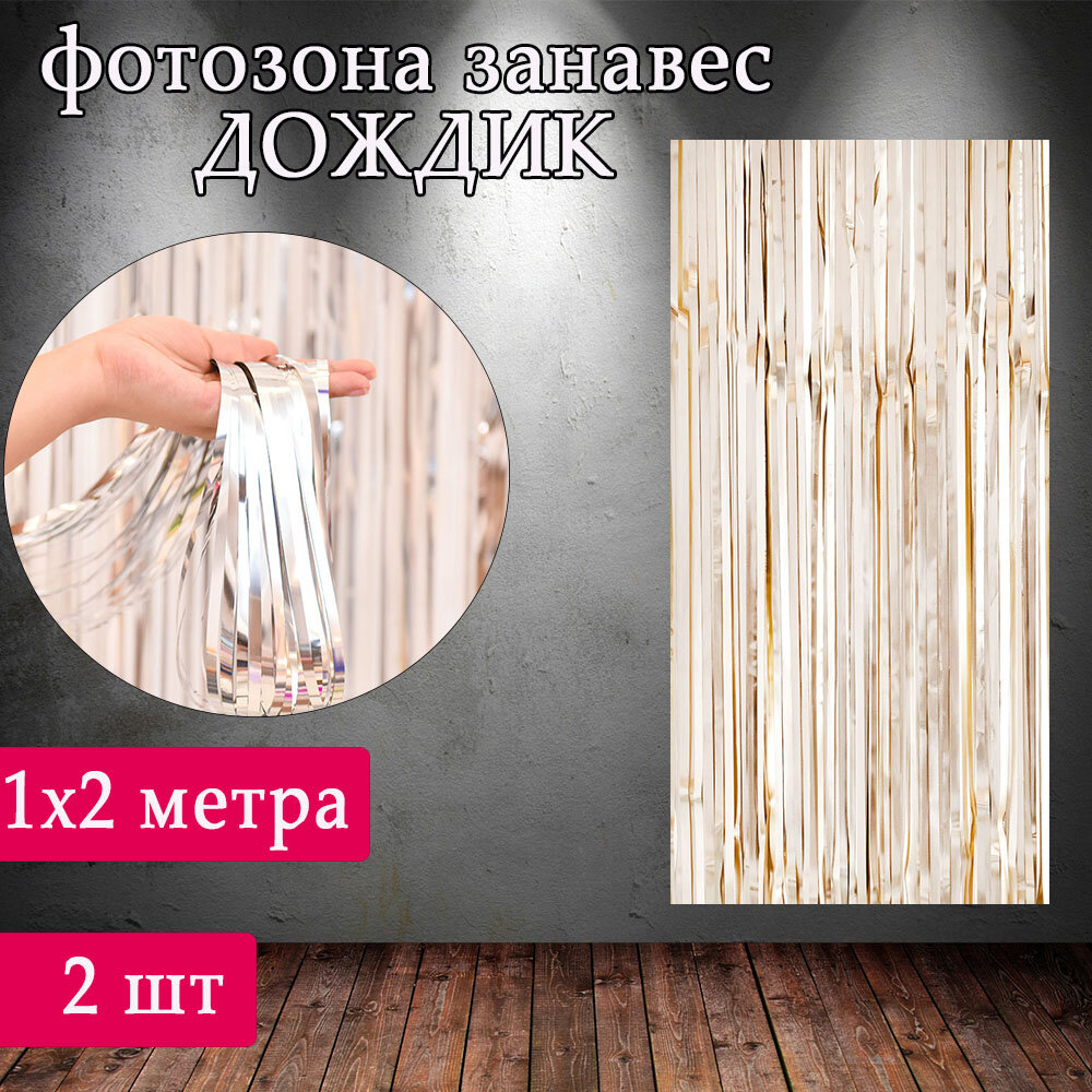 Купить Дождик занавес для фотозоны Голографический набор 2 шт /Гирлянда для фотозоны /Занавес дождик для фотозоны, Бронза, Набор 2 шт