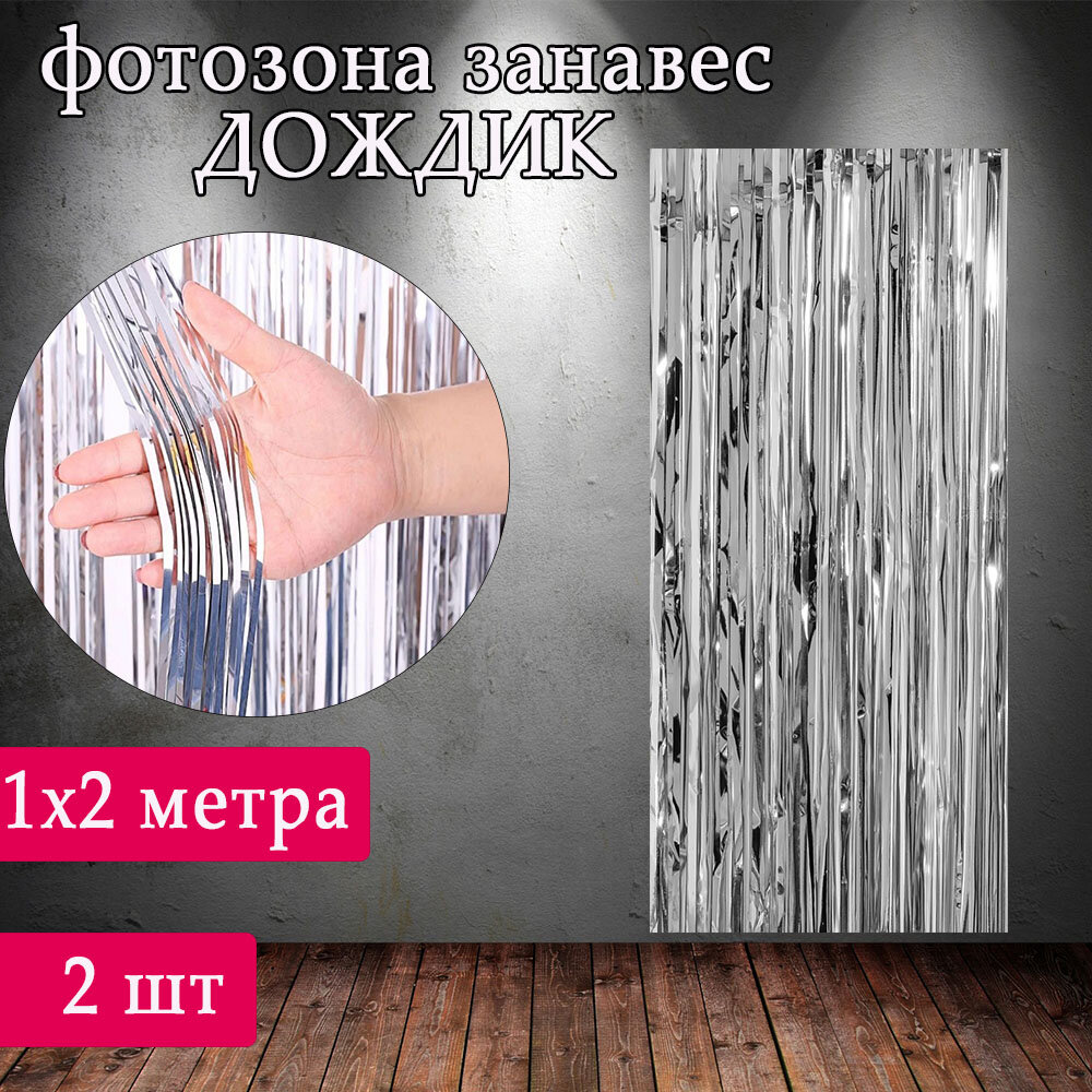 Купить Дождик занавес для фотозоны Голографический набор 2 шт /Гирлянда для фотозоны /Занавес дождик для фотозоны, Серебро, набор 2 шт