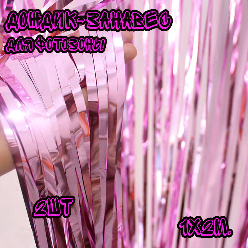 Купить Дождик занавес для фотозоны Голографический набор 2 шт /Гирлянда для фотозоны /Занавес дождик для фотозоны, Розовый, набор 2 шт
