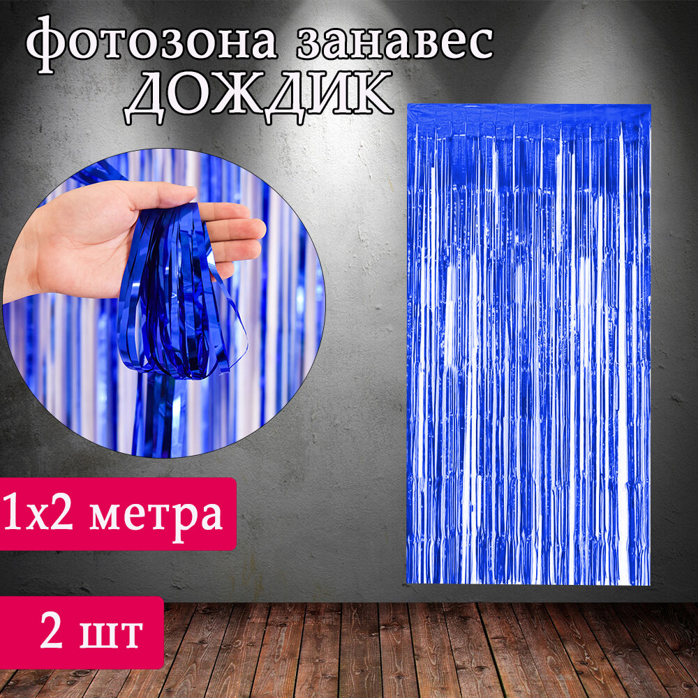 Купить Дождик занавес для фотозоны Голографический набор 2 шт /Гирлянда для фотозоны /Занавес дождик для фотозоны, Синий, набор 2 шт