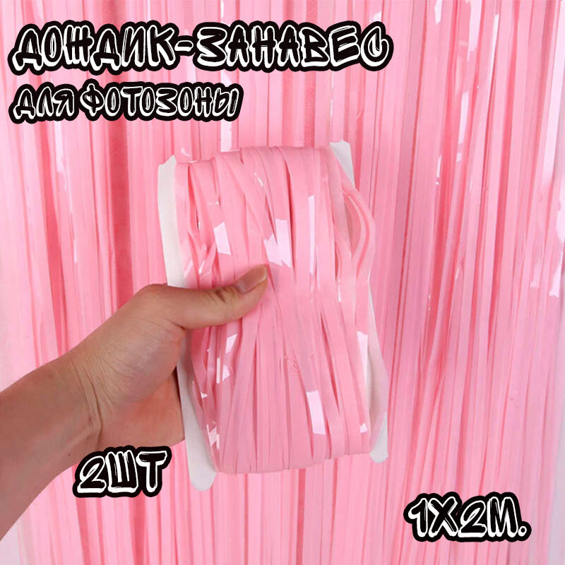 Купить Дождик занавес для фотозоны Голографический набор 2 шт /Гирлянда для фотозоны /Занавес дождик для фотозоны, Розовый Макарон, набор 2 шт