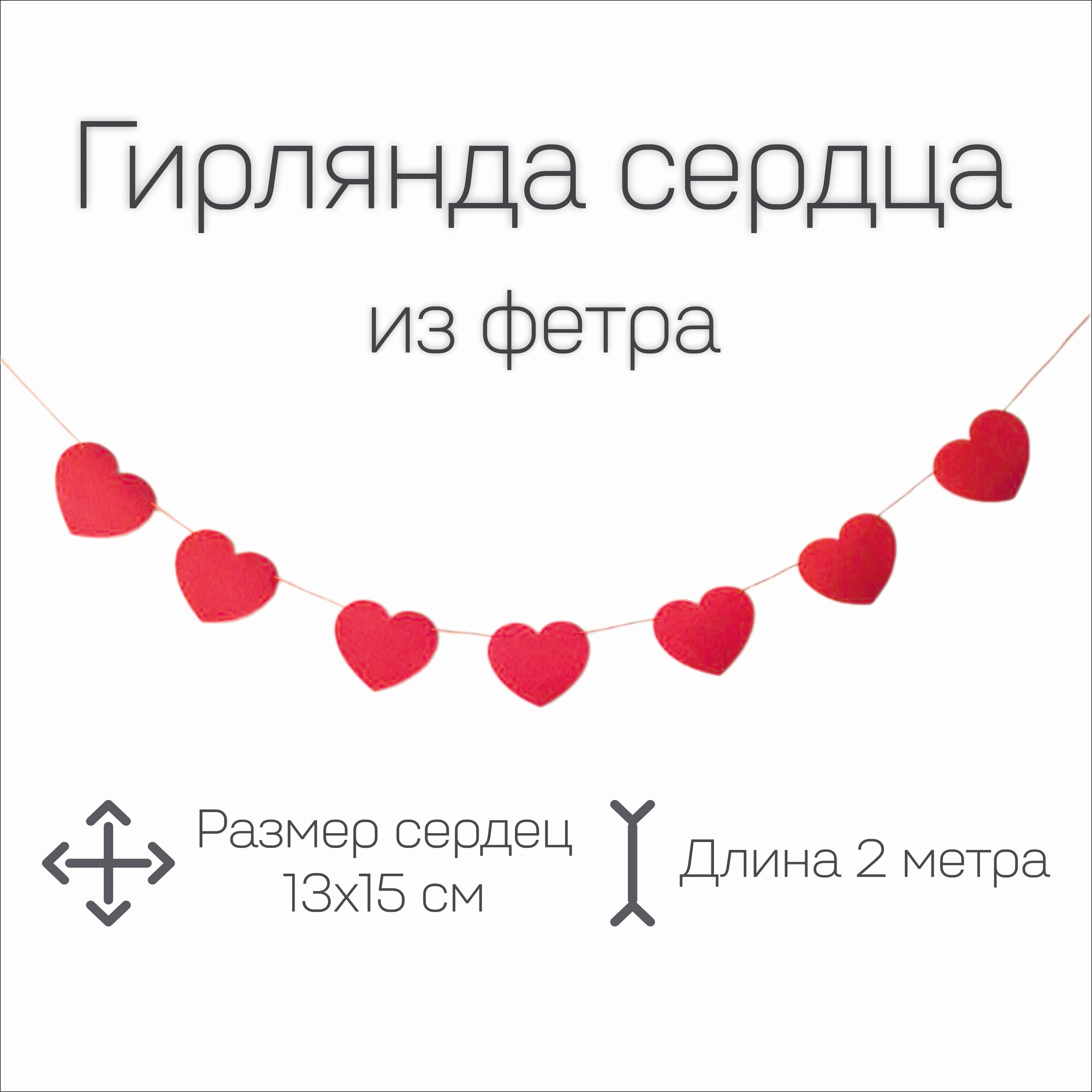 СохранитьГирлянда сердца из фетра, 2 метра готовая, фетр красный, сердечки 13*15см интересное: