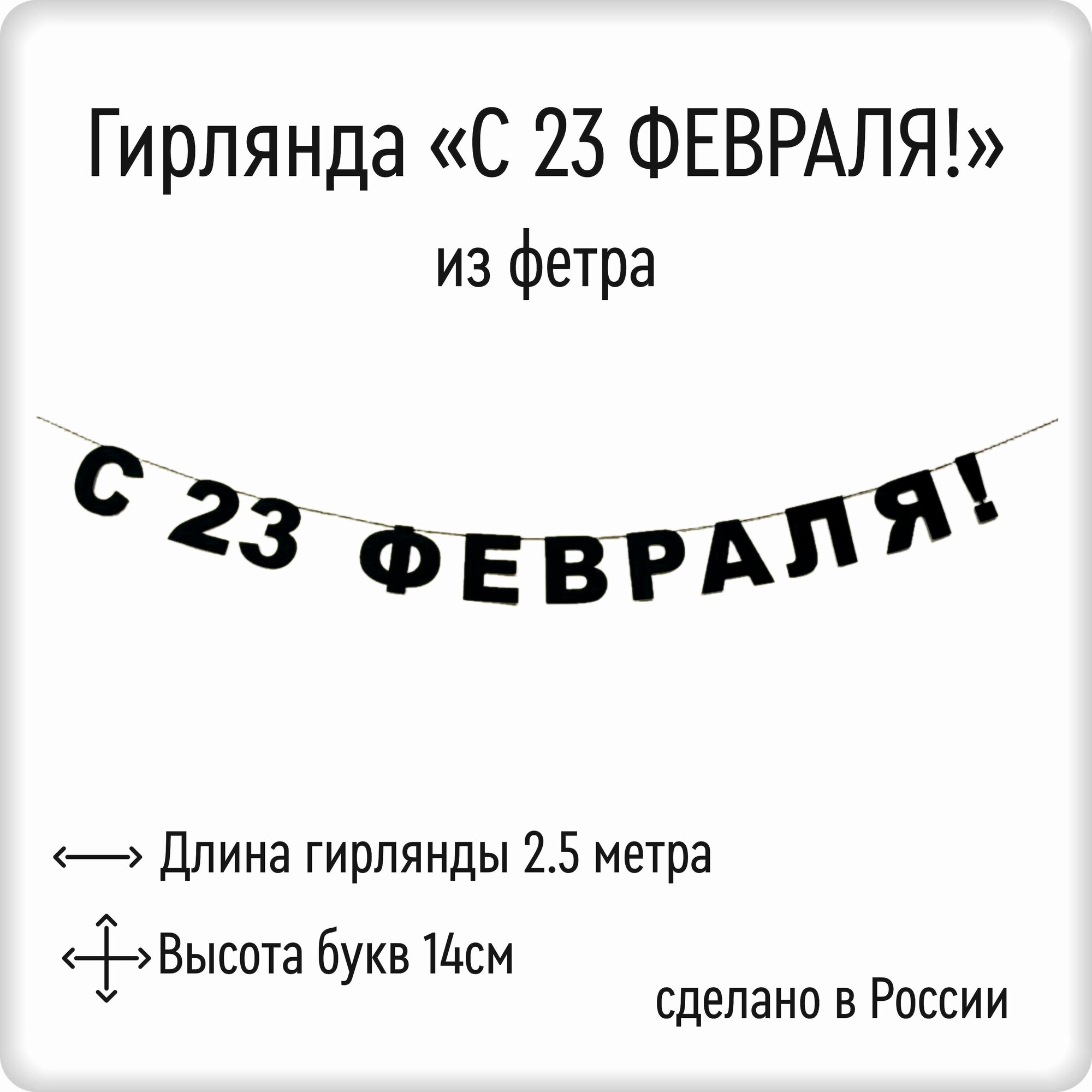 СохранитьГирлянда-растяжка на 23 февраля, материал фетр, цвет черный, готовая, 2.5 метра. интересное: