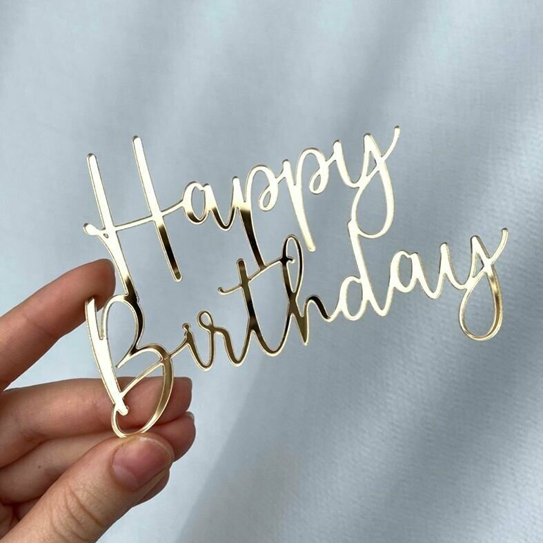Купить Топпер на торт "Happy Birthday №5", золотой зеркальный акрил