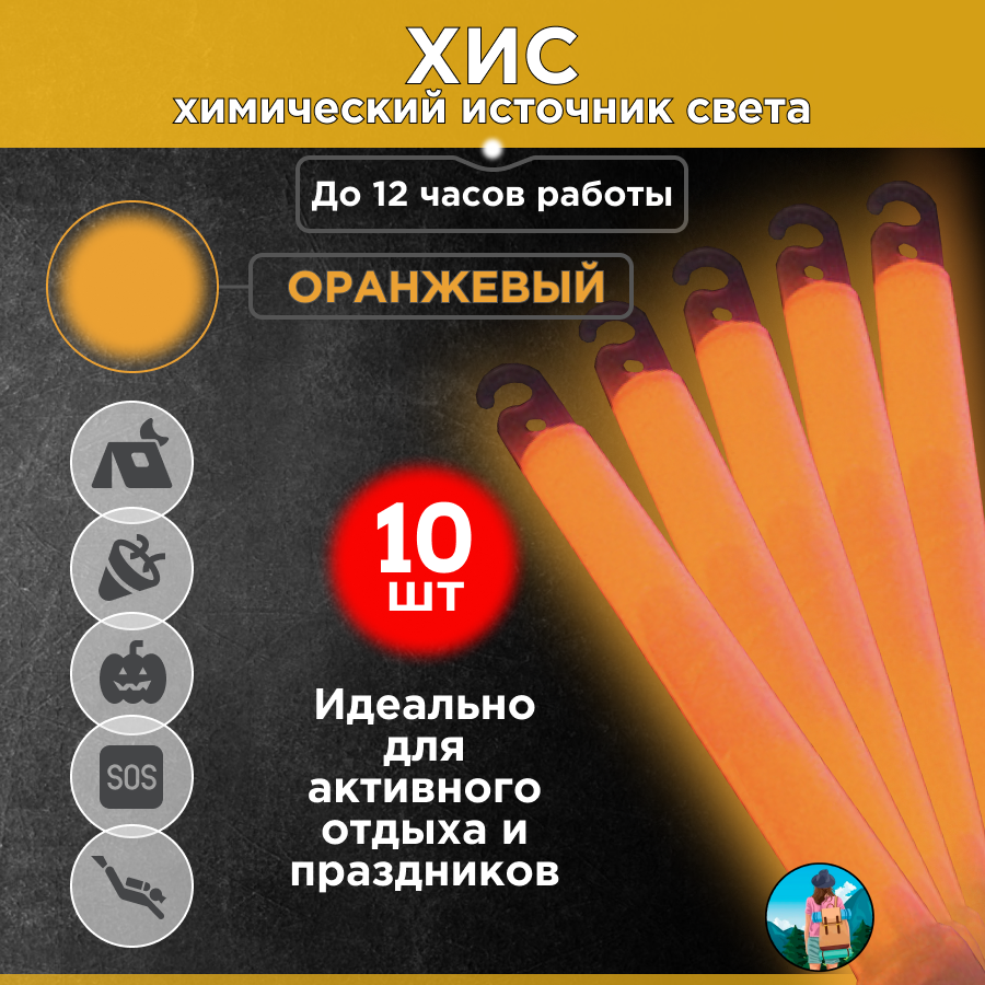 СохранитьХимический источник света (ХИС), 10шт. оранжевый, большая неоновая палочка 15х150 мм, тактический источник света без батареек интересное: