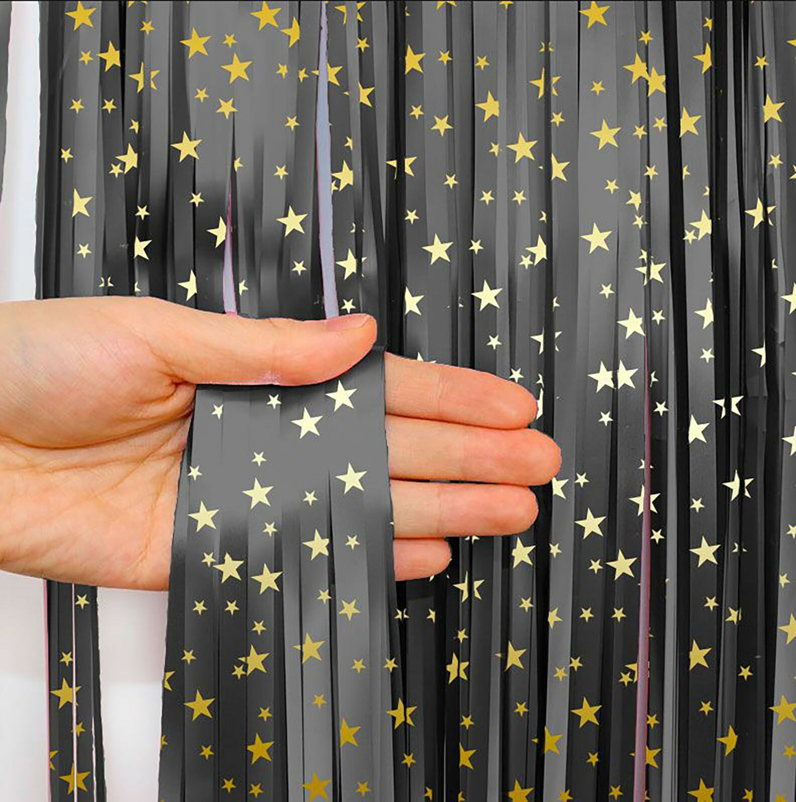 Купить Занавес Дождик Черный с Золотыми звездами 2м*1м, 1 шт