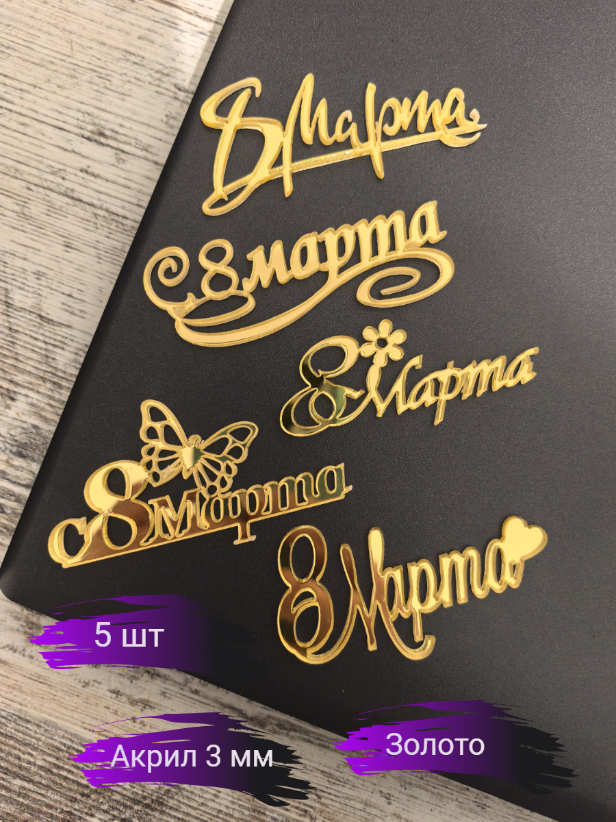 СохранитьНабор топперов "8 марта", мини, 5 штук, торцевой, акрил 3 мм, золото, TopperOff34 интересное: