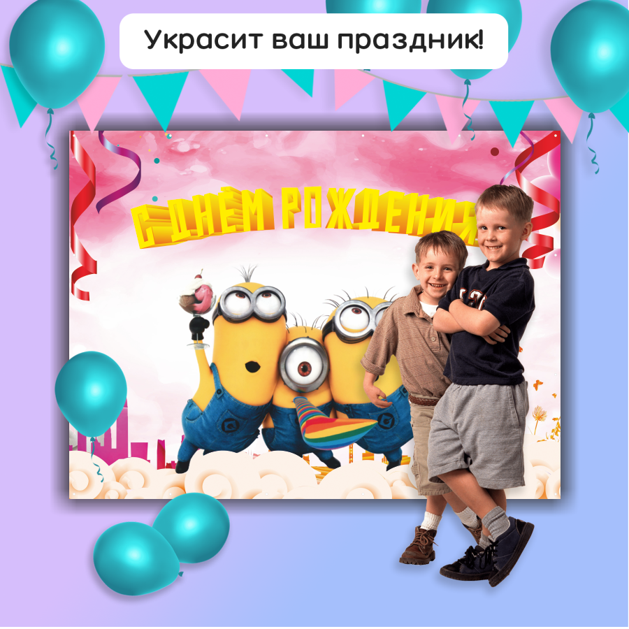 Купить Фотозона "Миньоны" для празднования Дня Рождения, 200x150 см