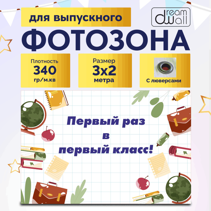 Фотозона "1 сентября" Первый раз в первый класс! фон тетрадь в клетку, 150х150 см