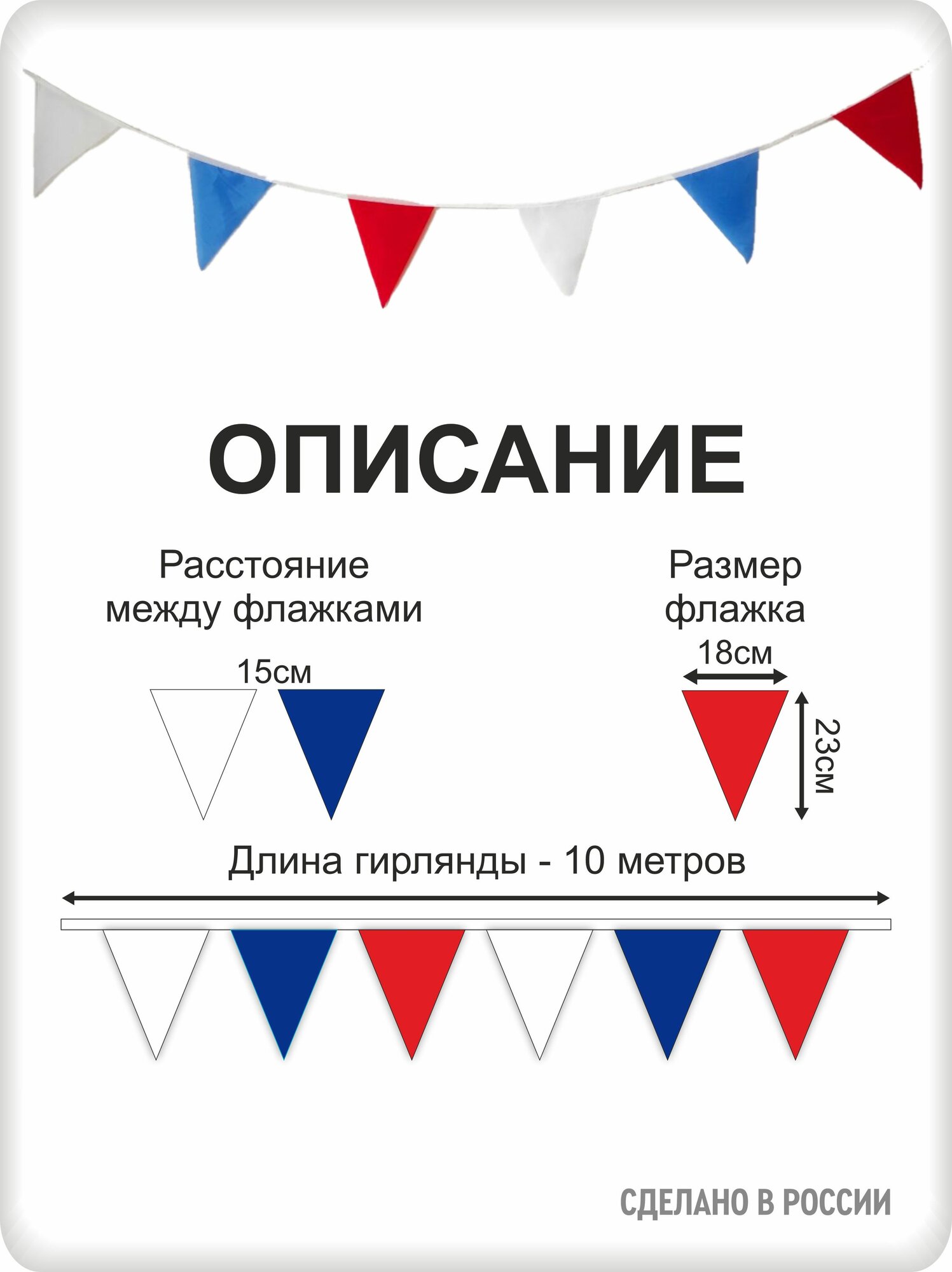 Гирлянда флажки 10 метров триколор, для помещения и улицы, 18*23 интересное: