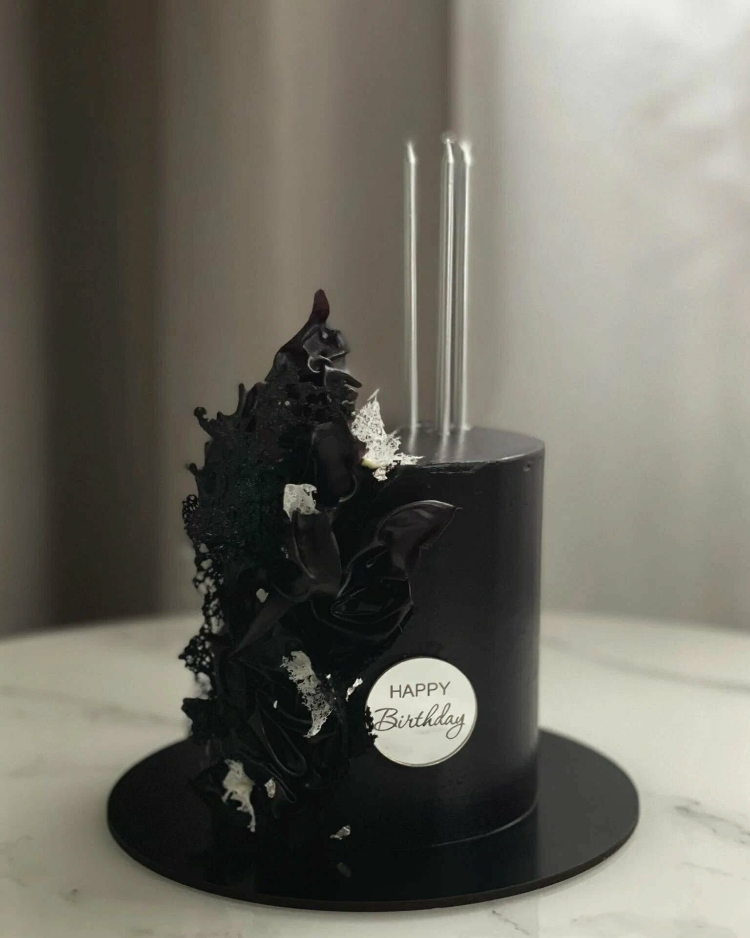 5 топперов-бирок на торт "Happy Birthday №1", зеркальный серебряный акрил интересное: