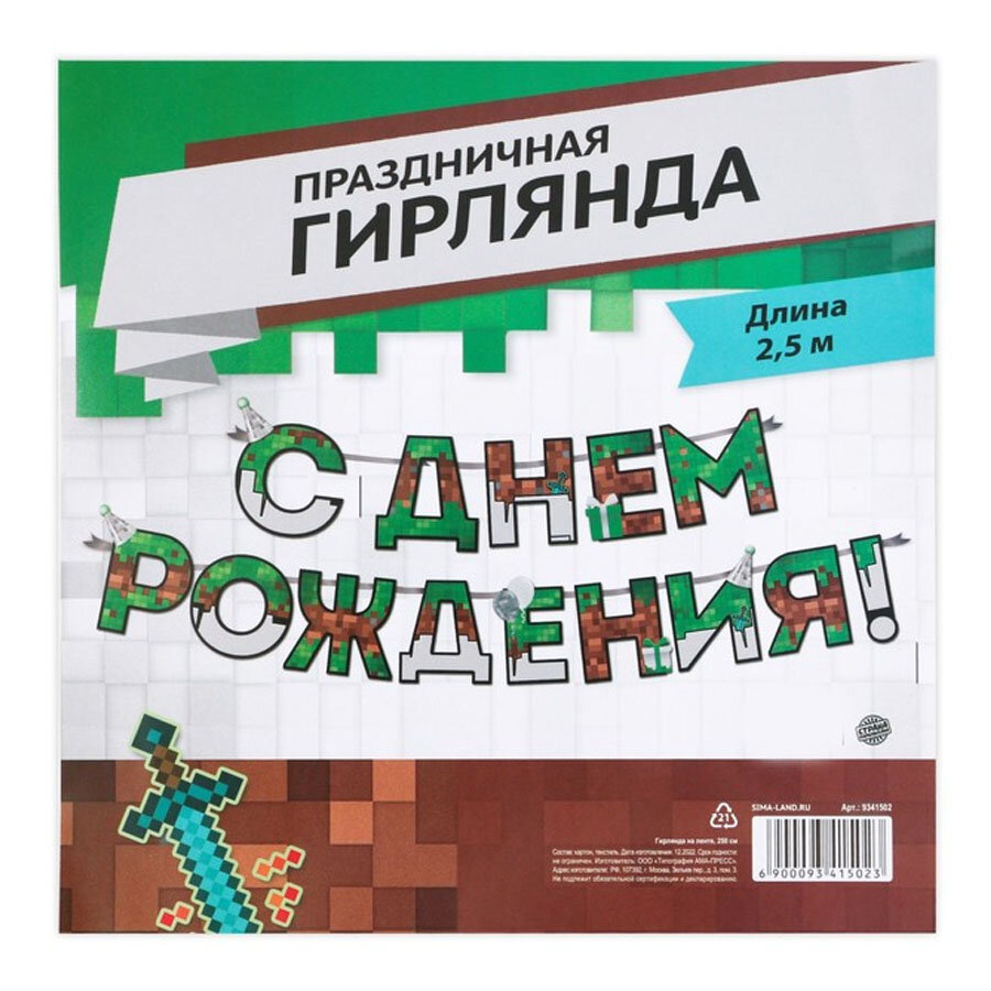 Купить Гирлянда растяжка Майнкрафт/Minecraft, С Днем Рождения, 250 см
