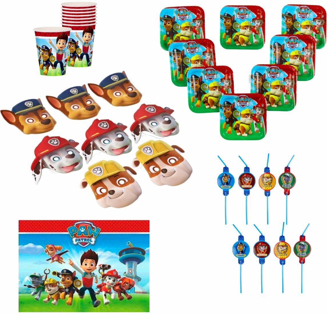 Купить Набор для детского праздника «Щенячий патруль» на 8 персон и бумажные маски