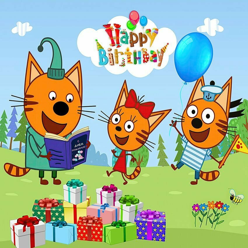 Баннер праздничный Три котика 150х150см для детского дня рождения, фотозона интересное: